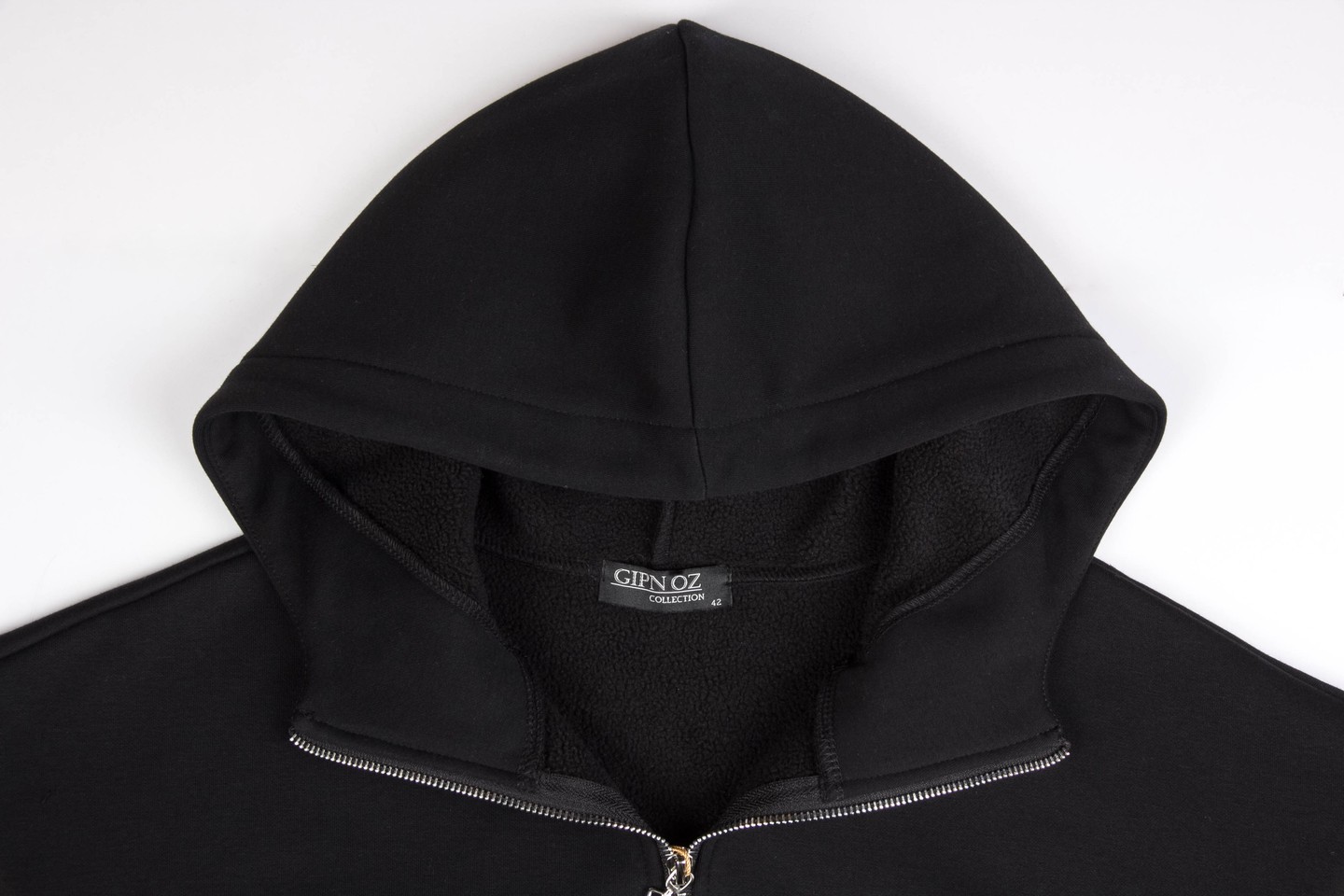 черный Настала пора холодов, а значит, пора утепляться В наше время выглядеть стильно и модно, и при этом чувствовать себя комфортно стало возможным даже в самое холодное время года. Подарит вам удобство и не даст замерзнуть морозным днем толстовка из утепленного трикотажа. Толстовка «оверсайз» с капюшоном. Застежка и карманы на «молниях». На спинке пришивной металлический декор. Низ изделия и низ рукава обработаны поясом и манжетами. Трикотаж утепленный на флисе, состав: 75% хлопок, 20% полиэстер, 5 % спандекс.