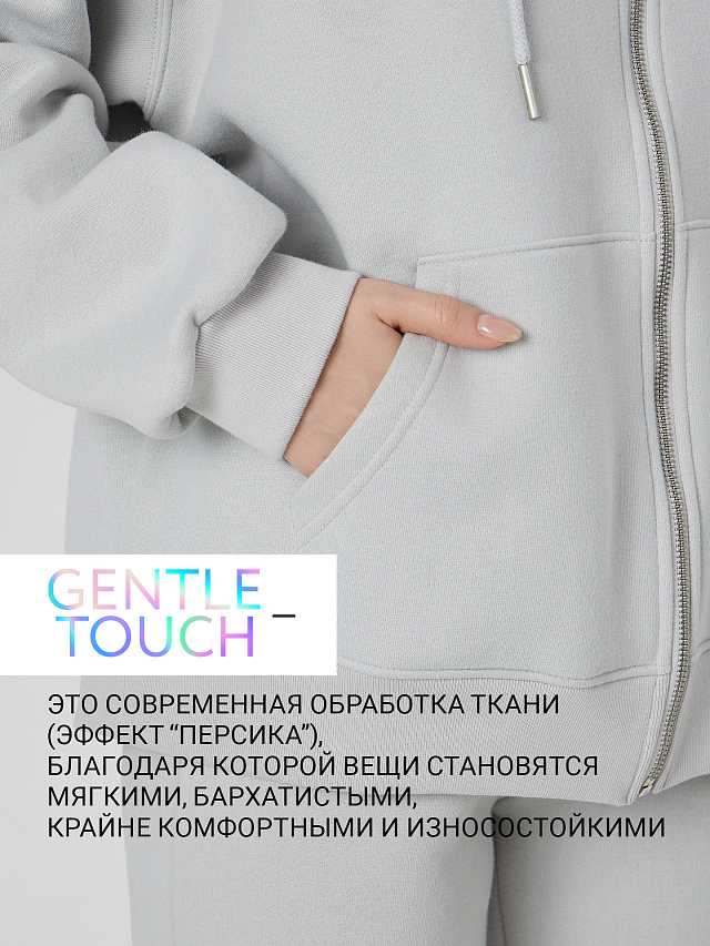 Женская толстовка прямого кроя из коллекции Gentle Touch создана для тех, кто ценит осознанный комфорт. Модель выполнена из инновационного футера с пич-эффектом и мягким начесом внутри, который создает на поверхности ткани бархатистую текстуру, дарящую невероятно нежные тактильные ощущения.