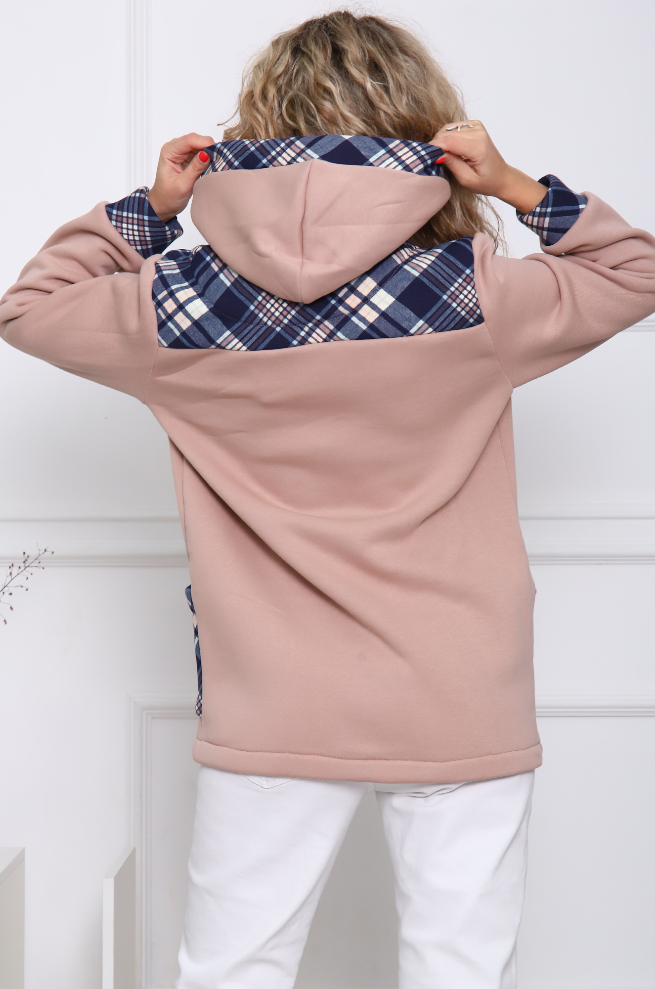 Удобная и уютная тёплая женская толстовка. Модель прямого кроя, на молнии, с контрастными накладными карманами и двойным капюшоном. Ткань футер трёхнитка с начёсом - мягкая, тёплая и приятная к телу.