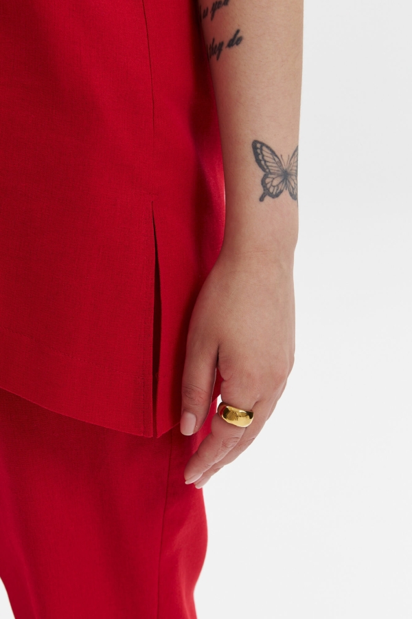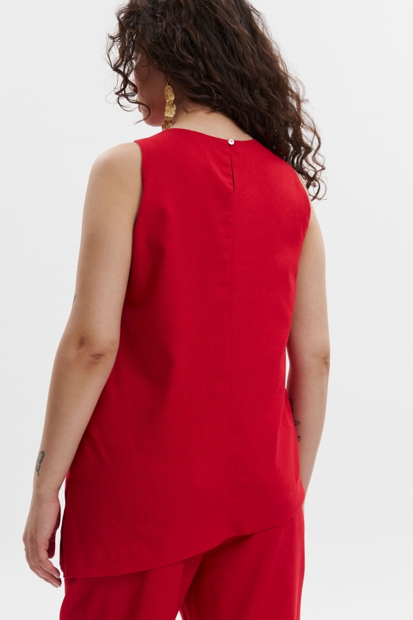 Топ А-силуэта с ассиметричным низом и разрезами по бокам.