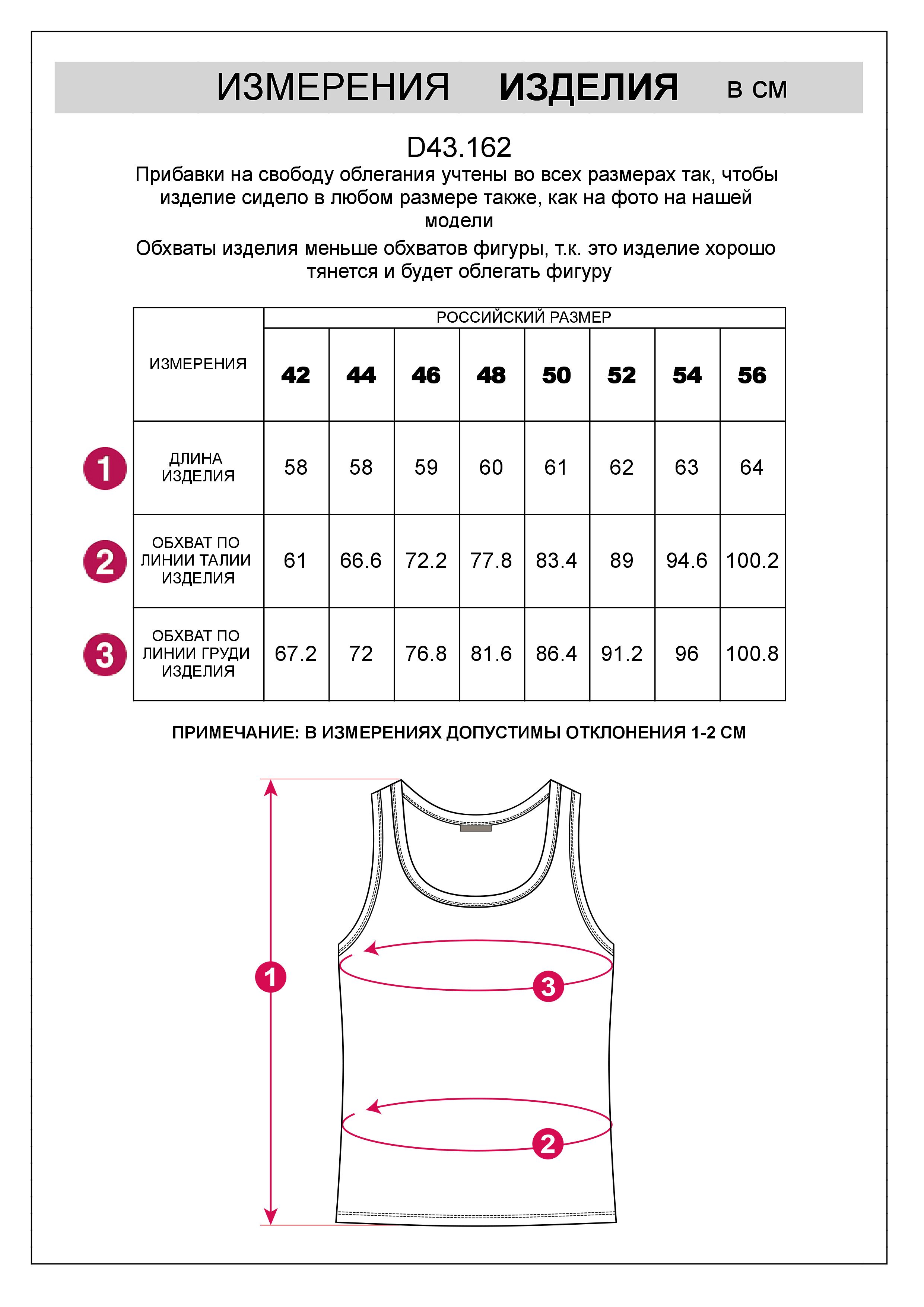Эта базовая майка подойдет на все сезоны, в том числе, как нижний слой. Майка подходит для больших, включая 56 размер, и маленьких размеров, а также смотрится изящно как на высокий рост, так и на низкий. Благодаря своей универсальности топ будет уместен на работе, деловых встречах или в повседневном образе. Он станет гармоничным дополнением, сохраняя элегантность даже в офисной обстановке. Незаменим в поездки, в путешествия, на отдых.