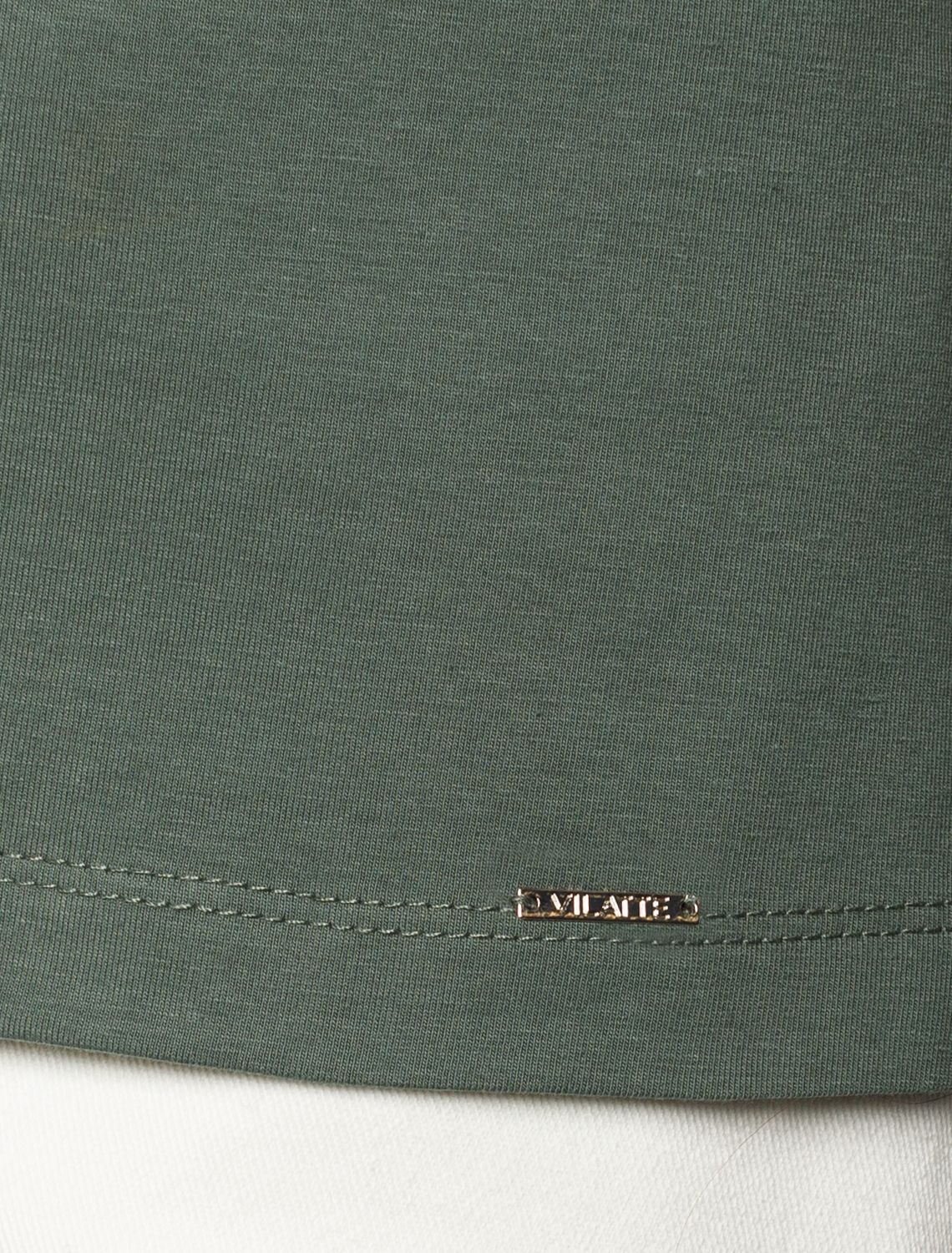 Топ с V-вырезом выполнен из премиального хлопка. Модель дополнена регулируемыми бретелями, позволяющими носить изделие на нужном уровне. Эластичный материал гарантирует комфорт и формоустойчивость. Из украшений металлический логотип бренда.