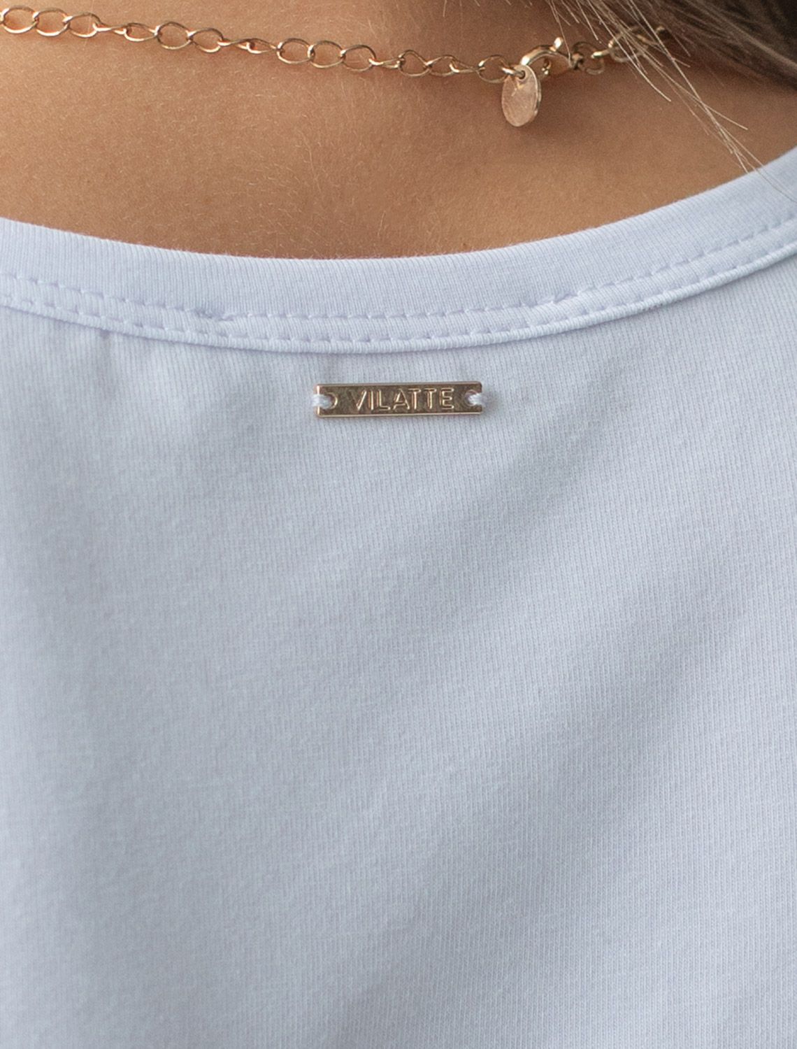 Топ выполнен из премиального хлопка с эластаном. V- вырез подчеркивает линию декольте и визуально вытягивает шею. Лаконичная базовая модель впишется в любой гардероб и дополнит многослойные образы. Материал изделия хорошо тянется и гарантирует идеальную посадку по фигуре. Топ украшен только металлическим логотипом бренда.