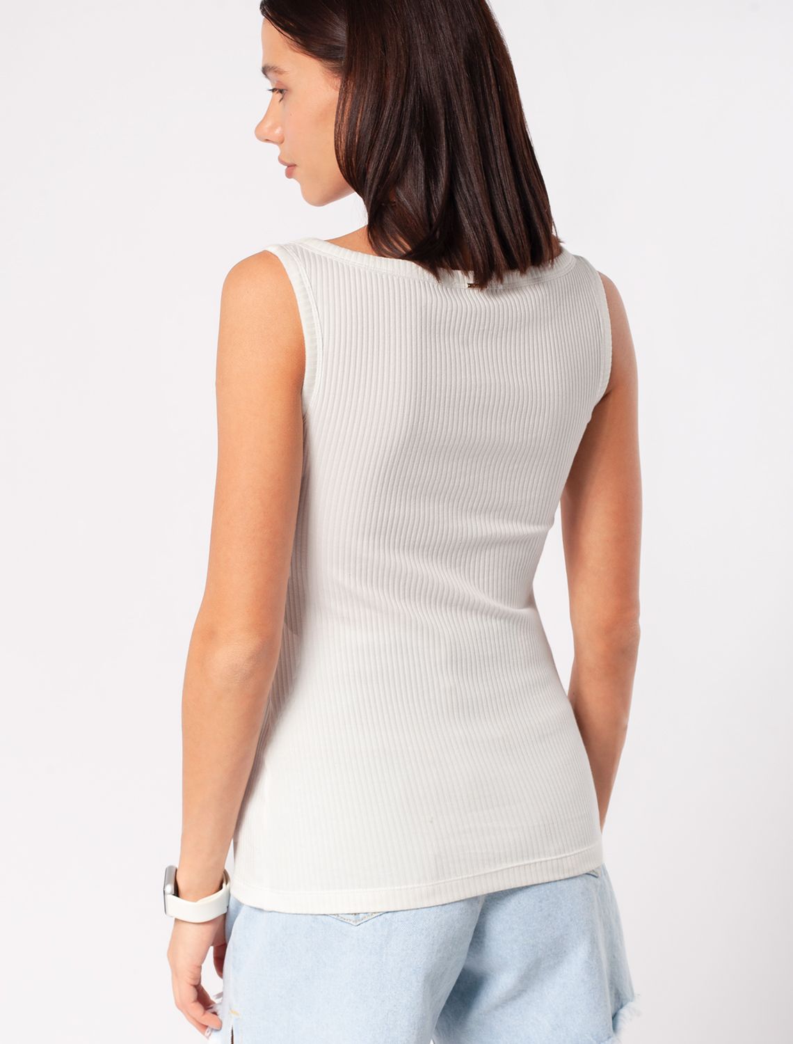 Отличный топ, идет в размер, ткань трикотаж в рубчик. Мне подошел на ОГ-119, ОТ-103