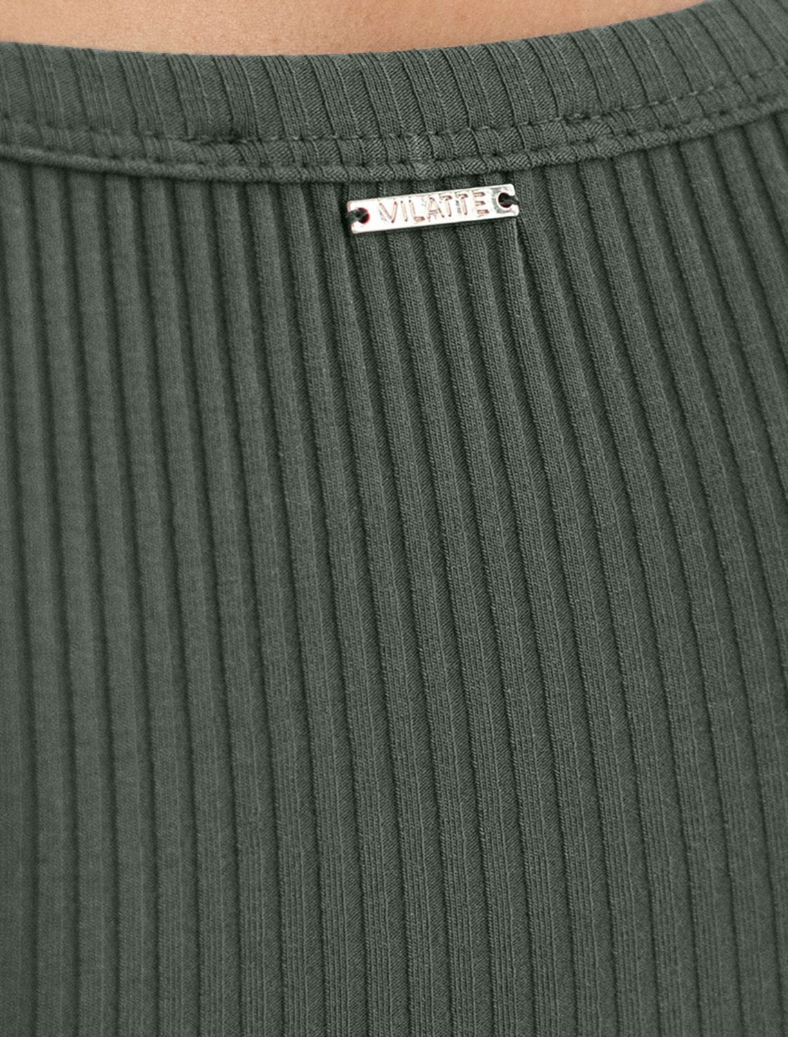 Топ выполнен из трикотажа в широкий рубчик. Эластичный хлопковый трикотаж сидит по фигуре, не сковывает движений и очень комфортный в носке. Фактура вертикальных полос визуально стройнит и вытягивает силуэт. Базовое изделие хорошо впишется в любой гардероб. Идеально подходит для многослойных образов.