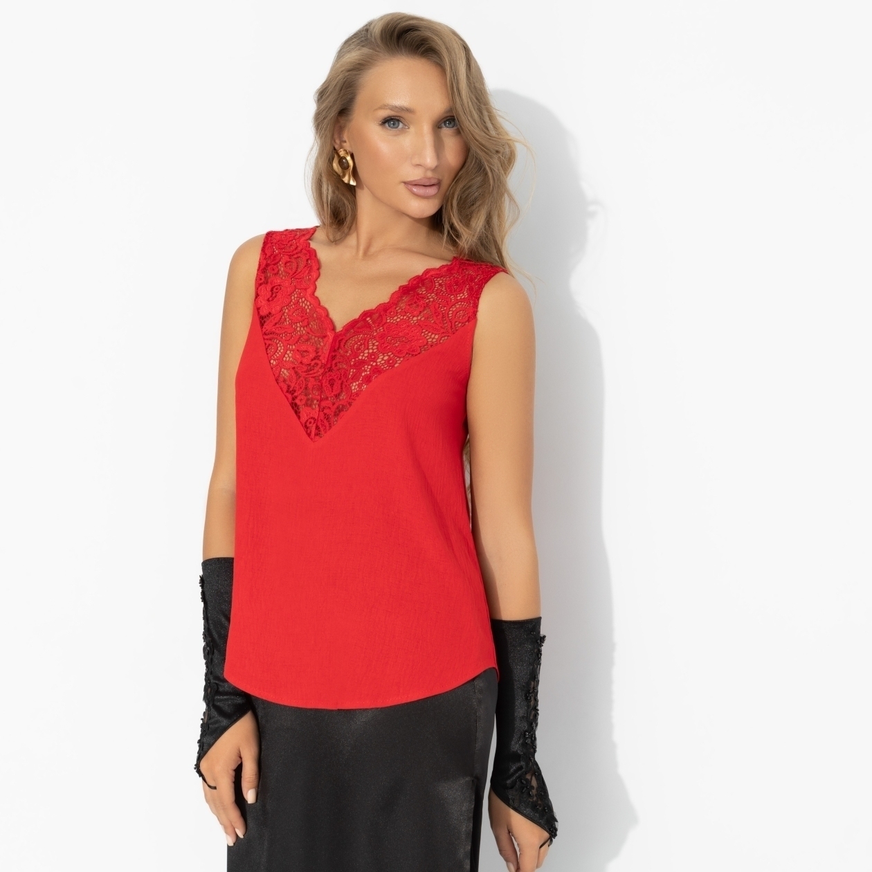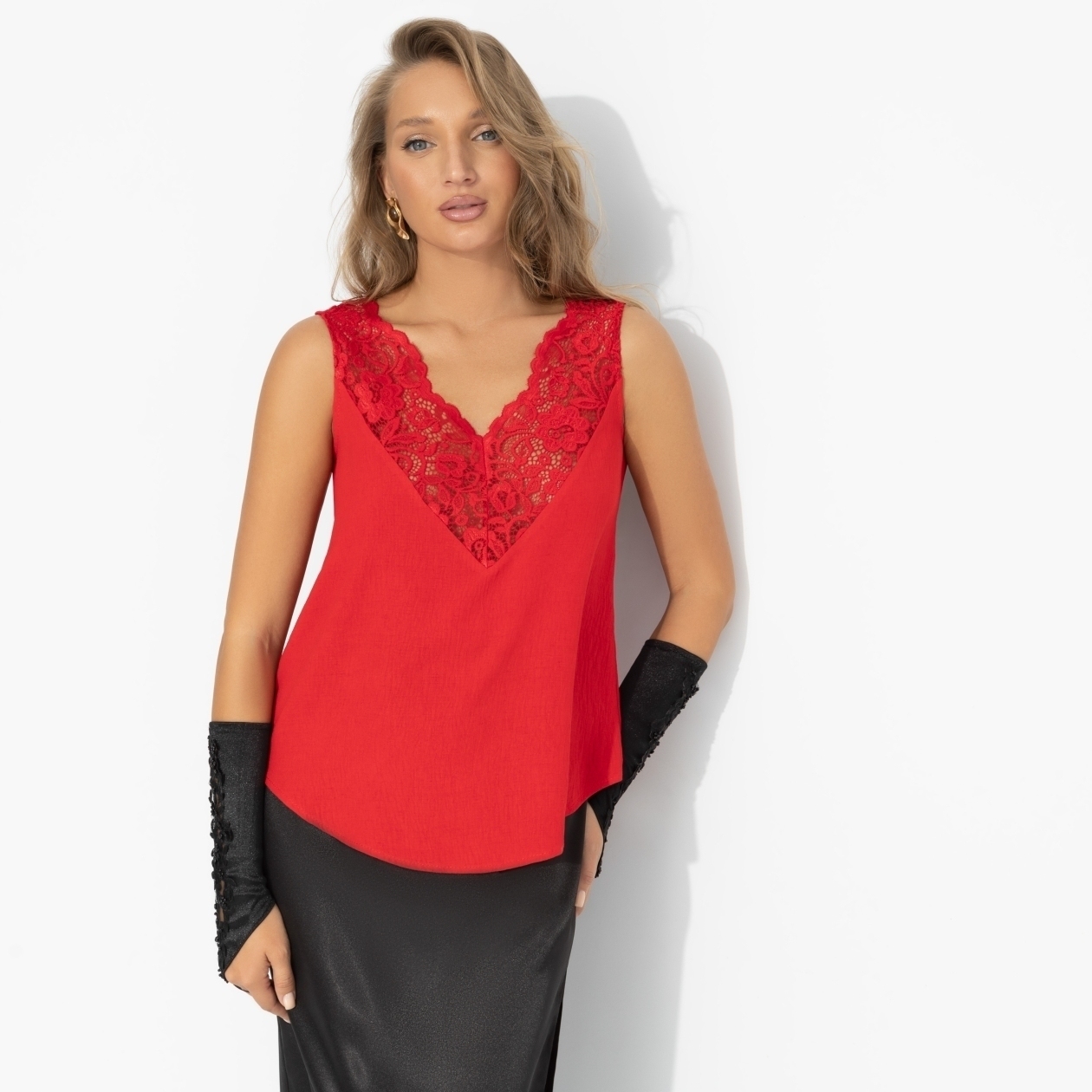 Топ комбинированный с кружевом, Момент откровения (цвет страсти)