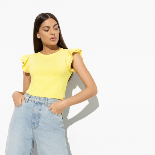 Этот топ сделан из высококачественного трикотажа «лапша», в состав которого входят 65% полиэстера, 30% вискозы и 5% спандекса. Такое сочетание материалов обеспечивает максимальный комфорт и долговечность. Трикотаж «лапша» мягко облегает фигуру, подчеркивая ее достоинства, при этом материал остается эластичным и приятным к телу. Вы будете чувствовать себя уютно и уверенно в любой ситуации, будь то деловая встреча или вечерняя прогулка.