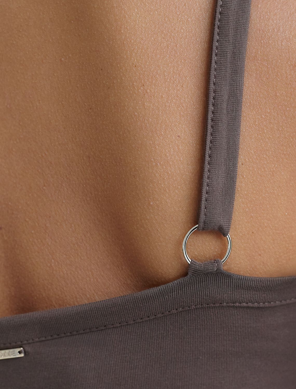 Стильный и базовый топ темно-кофейного цвета полуприлегающего кроя идеально подходит для девушек и женщин всех возрастов. Двуслойная зона бра. Линия декольте образована посредством сгиба полотна без отсрочки и закреплением обоих слоев в шве проймы. Удобные регулируемые бретели. Прямой силуэт подходит любому типу фигуры. Квадратный вырез горловины - тренд этого сезона. Он выполнен из качественной дышащей ткани, что обеспечивает комфорт в жаркую погоду. Однотонный дизайн позволяет легко сочетать его с различными предметами гардероба, создавая элегантный повседневный образ.