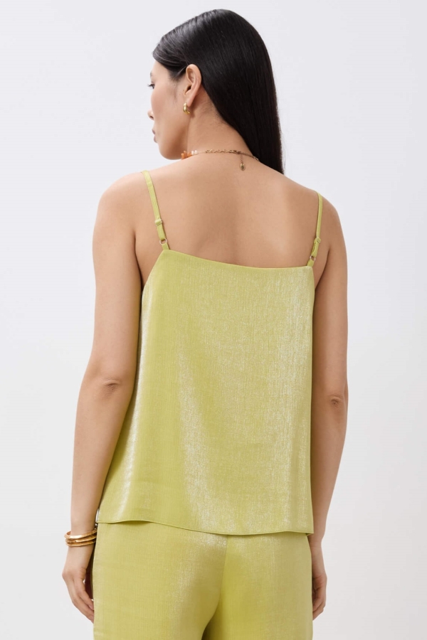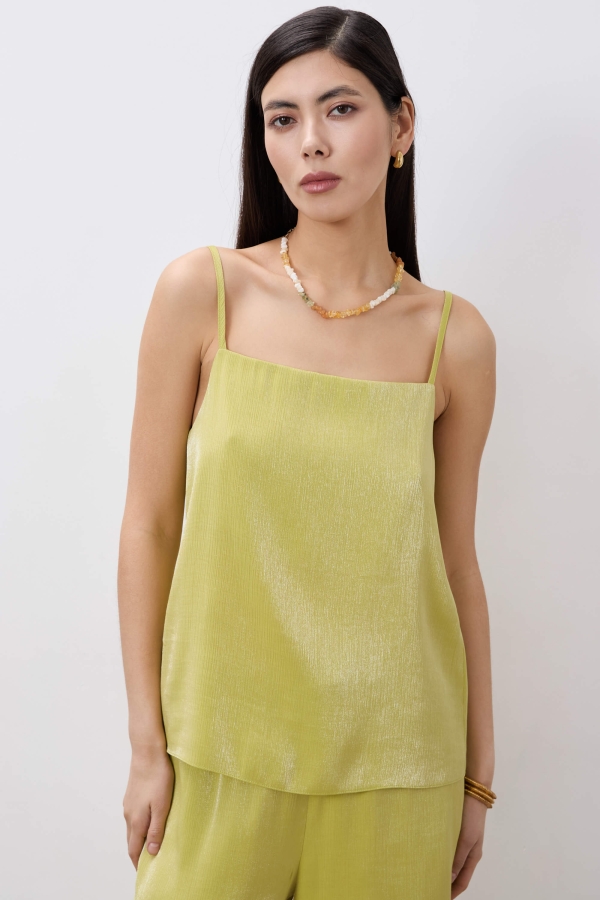 Топ из вискозного полотна. Модель прямого силуэта, на тонких регулируемых бретелях. Низ ровный.