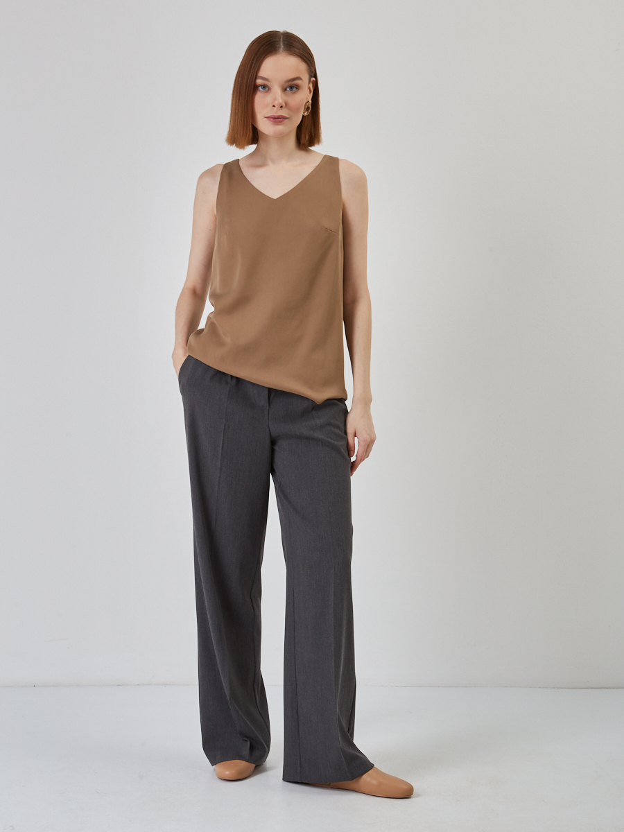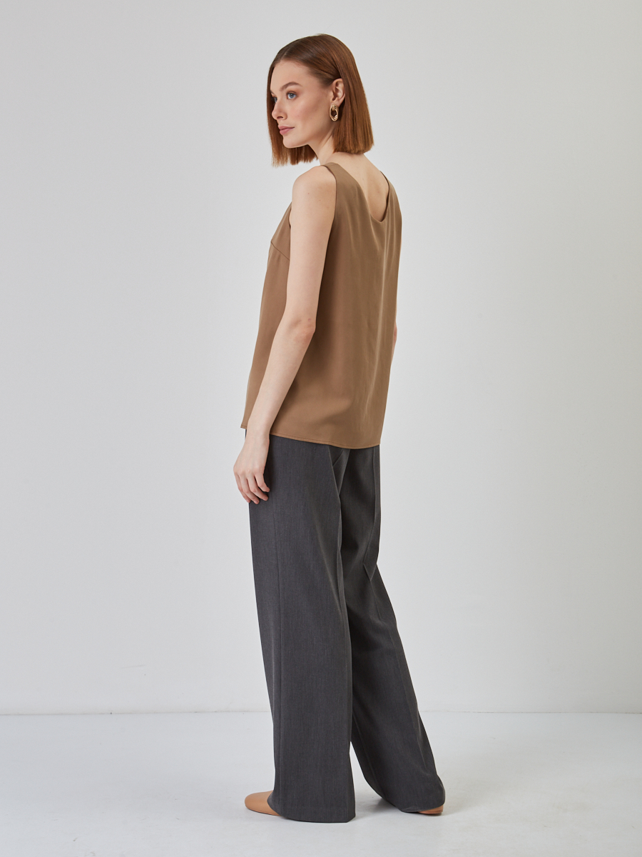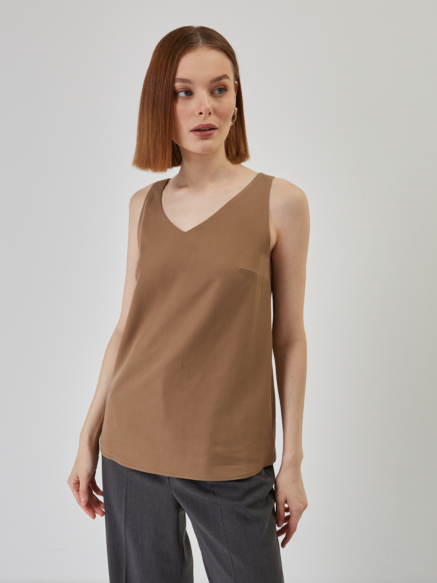 Представляем вашему вниманию Топ V-образный трапециевидный из блузочной ткани в актуальном коричневом цвете — универсальную модель, которая станет жемчужиной ассортимента вашего бутика или шоурума. Разработанный нашими конструкторами, этот топ идеально сочетает в себе элегантность и комфорт, отвечая запросам самой взыскательной аудитории.Преимущества для вашего бизнеса:Безупречное качество пошива: Каждое изделие проходит строгий контроль на всех этапах собственного производства TANTINO, обеспечивая долгий срок службы и отличный внешний вид. Мы используем только высококачественные блузочные ткани, приятные к телу.Актуальный дизайн: Трапециевидный силуэт и глубокий V-образный вырез на полочке и спинке придают топу современный и утонченный вид. Модель без рукавов позволяет легко интегрировать ее как в летние, так и в многослойные демисезонные образы.Высокий спрос: Однотонный коричневый цвет — это классика, которая всегда актуальна и легко комбинируется. Топ станет незаменимой базой в гардеробе ваших клиентов, обеспечивая стабильный спрос и быструю оборачиваемость.Универсальность: Идеально подходит для создания офисных, повседневных и даже вечерних образов в зависимости от аксессуаров. Это расширяет целевую аудиторию и повышает привлекательность товара.Этот топ — инвестиция в ассортимент, которая принесет вам стабильную прибыль и укрепит лояльность клиентов к вашему магазину. При росте модели 170 см, изделие 42 размера имеет длину по спинке 50.1 см, что обеспечивает идеальную посадку.Рекомендации по уходу: Деликатная стирка при температуре 30°C.