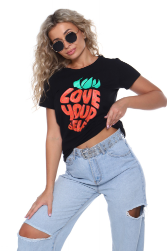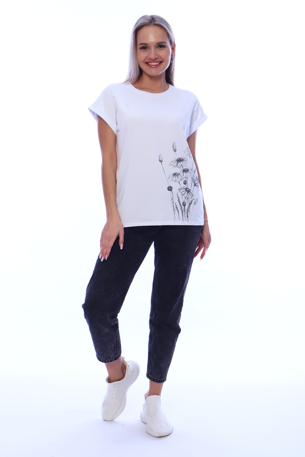 Футболка женская из хлопковой ткани с лайкрой. Ткань держит форму, не вытягивается, приятная на ощупь. Стильная футболка классического фасона со спущенным рукавом. Посадка свободная. Эта базовая модель подойдет абсолютно всем и станет необходимой вещью в вашем гардеробе.