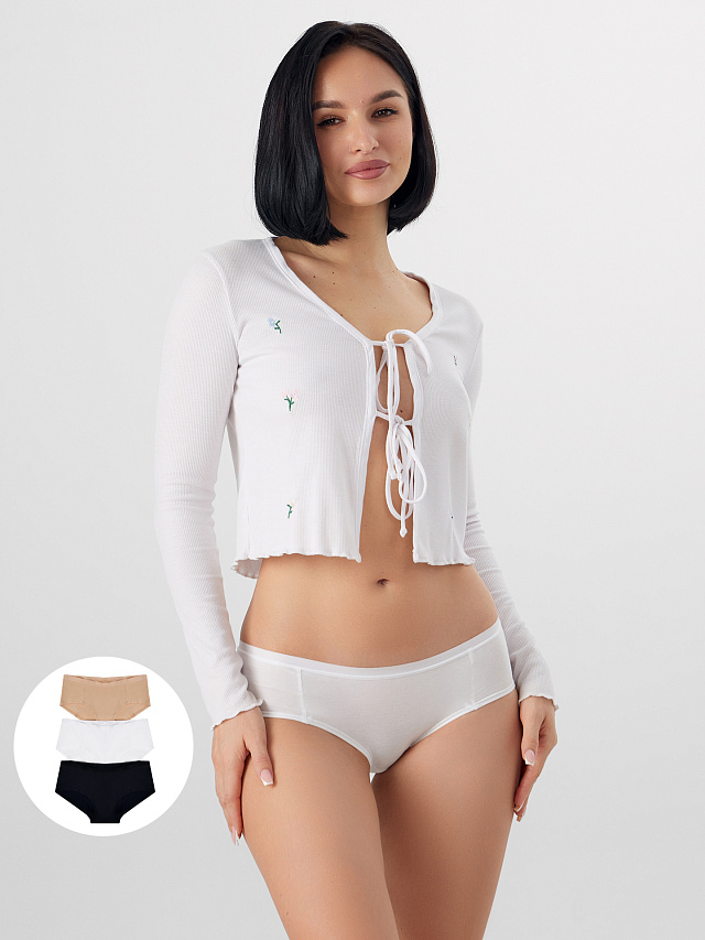 Набор из трех трусов-шортиков в спокойных оттенках белого, бежевого и черного — это практичное решение для повседневного гардероба. Модели из мягкого хлопкового трикотажа обеспечивают натуральную воздухопроницаемость и бережное отношение к чувствительной коже.
