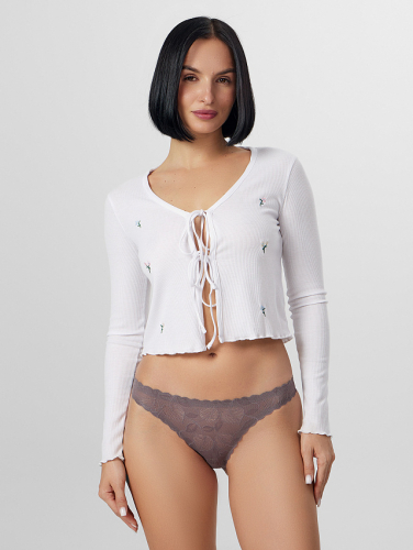 Передняя и задняя части изготовлены из упругого и эластичного трикотажа, а ластовица — из мягкого дышащего материала для дополнительной гигиеничности. Открытая обработка срезов по талии и ножкам создает аккуратный современный вид и обеспечивает удобное прилегание.
