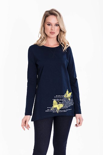 Спереди расположен принт, который добавляет тунике индивидуальности. Этот элемент декора привлечет внимание и сделает ваш образ запоминающимся.