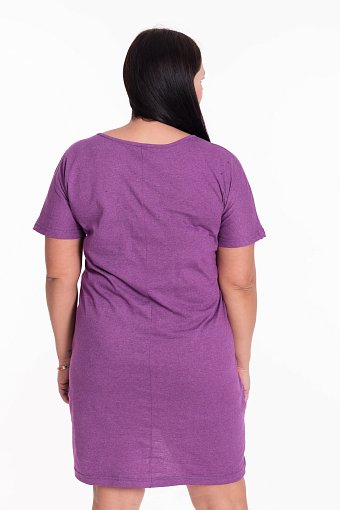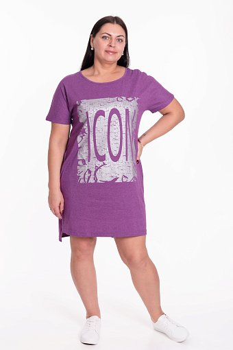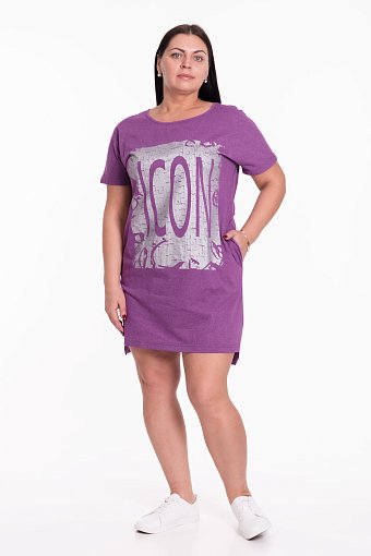 Туника из однотонной кулирки с цельнокроеным коротким рукавом. Овальный вырез горловины окантован бейкой. В боковых швах карманы. Спереди нанесён оригинальный принт. Низ туники разноуровневый, спинка длиннее переда.