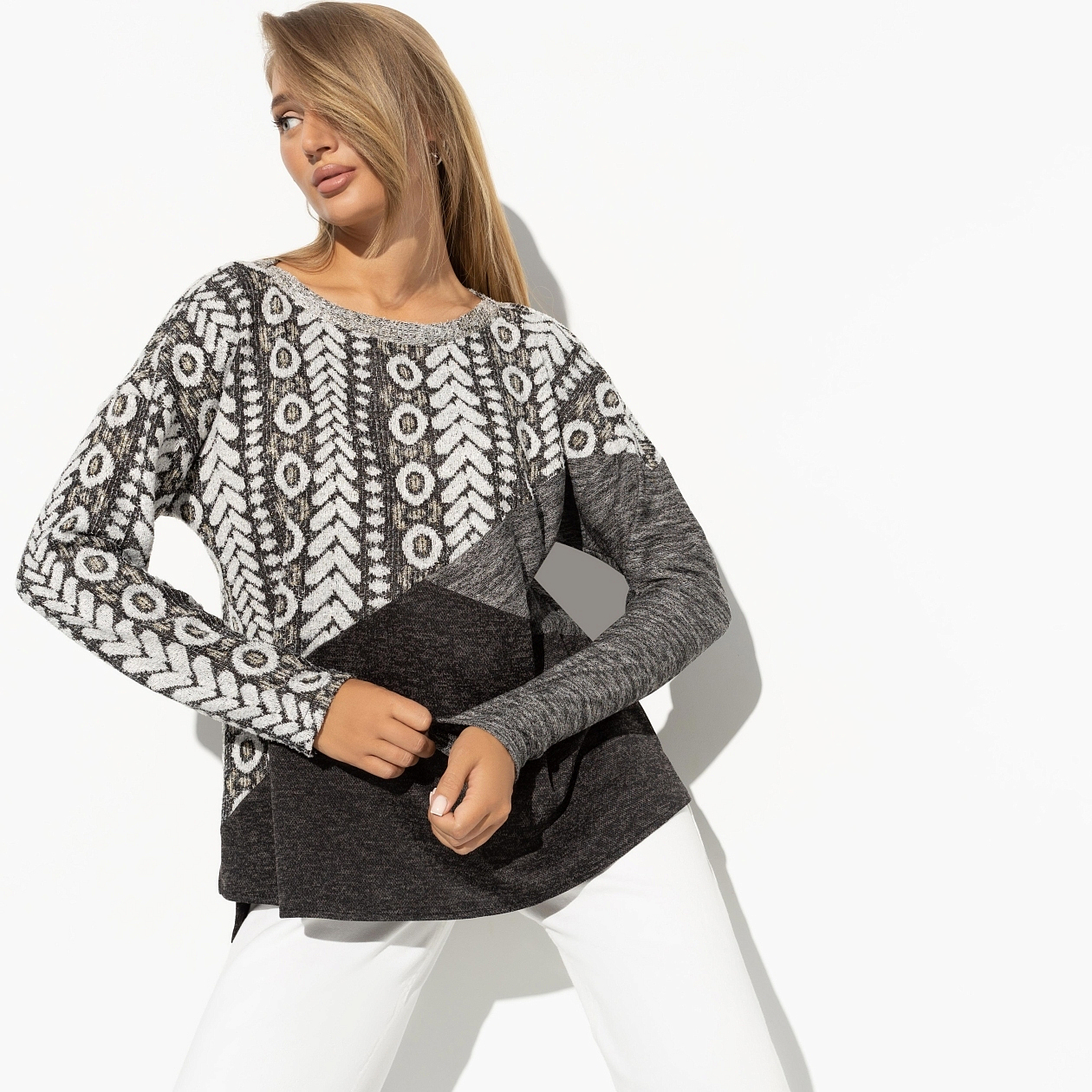 Мир меняется, и вместе с ним меняются приоритеты — теперь важно быть смелой, выразительной и неподражаемой. Эта туника станет символом вашей аутентичности. Покупка её оптом позволит вам предоставить своим клиентам возможность быть собой каждый день. Трикотаж «травка» и «меланж» носит в себе душевное тепло и эстетику, благодаря чему каждая деталь изделия становится значимой. Позвольте миру увидеть ваш истинный облик или поддержите тех, кто ищет своего особого стиля — приобретение таких внешних символов индивидуальности станет важным шагом на пути к неординарности.
