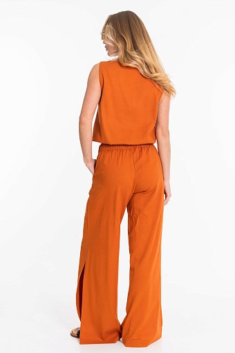 Топ на резинке по низу выполнен из натурального льна с добавлением вискозы.