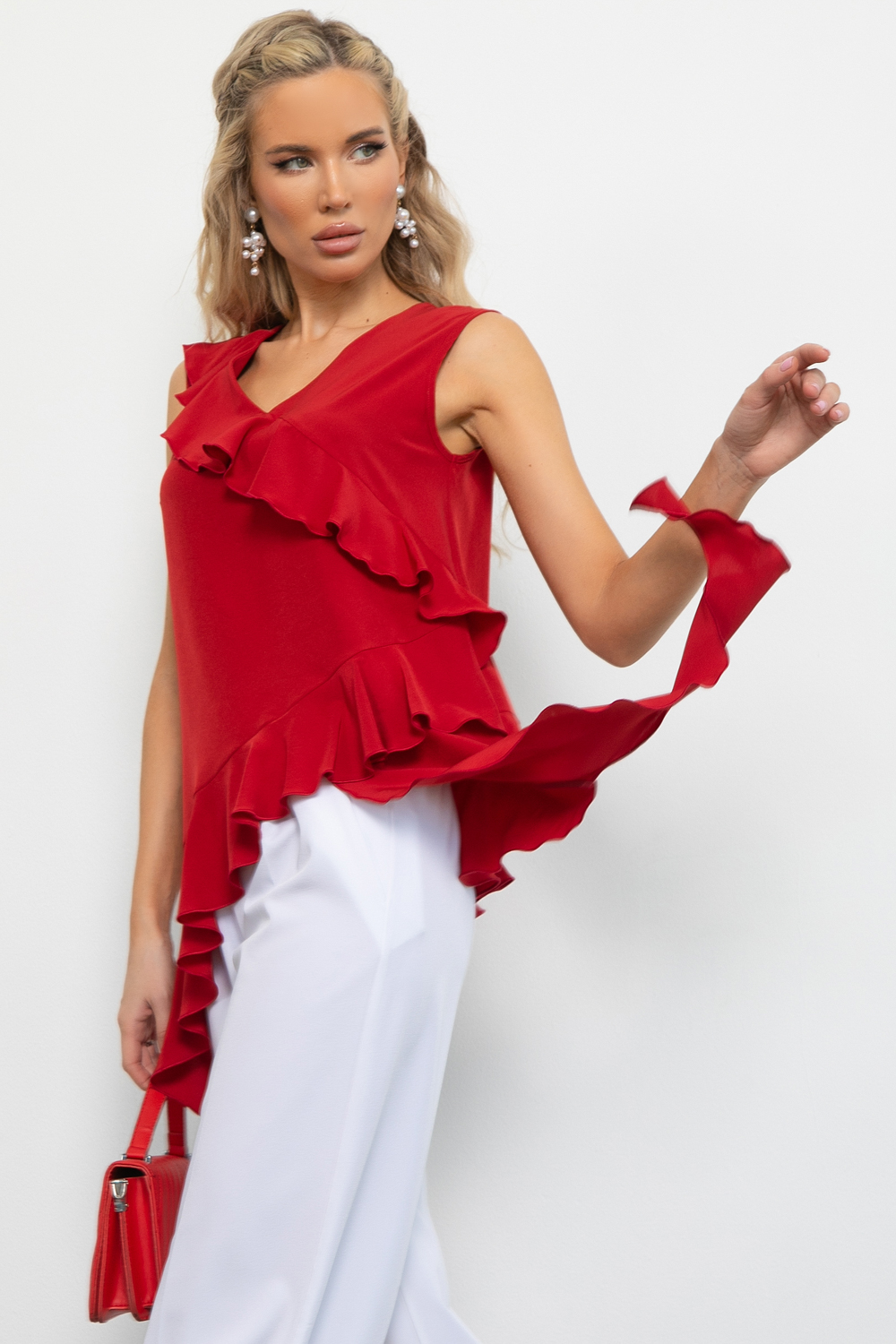 Туника с длинными воланами – это элегантный и универсальный предмет гардероба, который подчеркнет вашу женственность и добавит образу легкости и романтичности. Выполнена из легкой и приятной к телу ткани, обеспечивающей комфорт в течение всего дня. Благодаря своему лаконичному дизайну, эта туника подойдёт как для офиса, так и  для вечерних прогулок. Надевайте ее с аксессуарами или обувью на каблуках, чтобы создать более формальный вид, или сочетайте с кроссовками для повседневного образа.