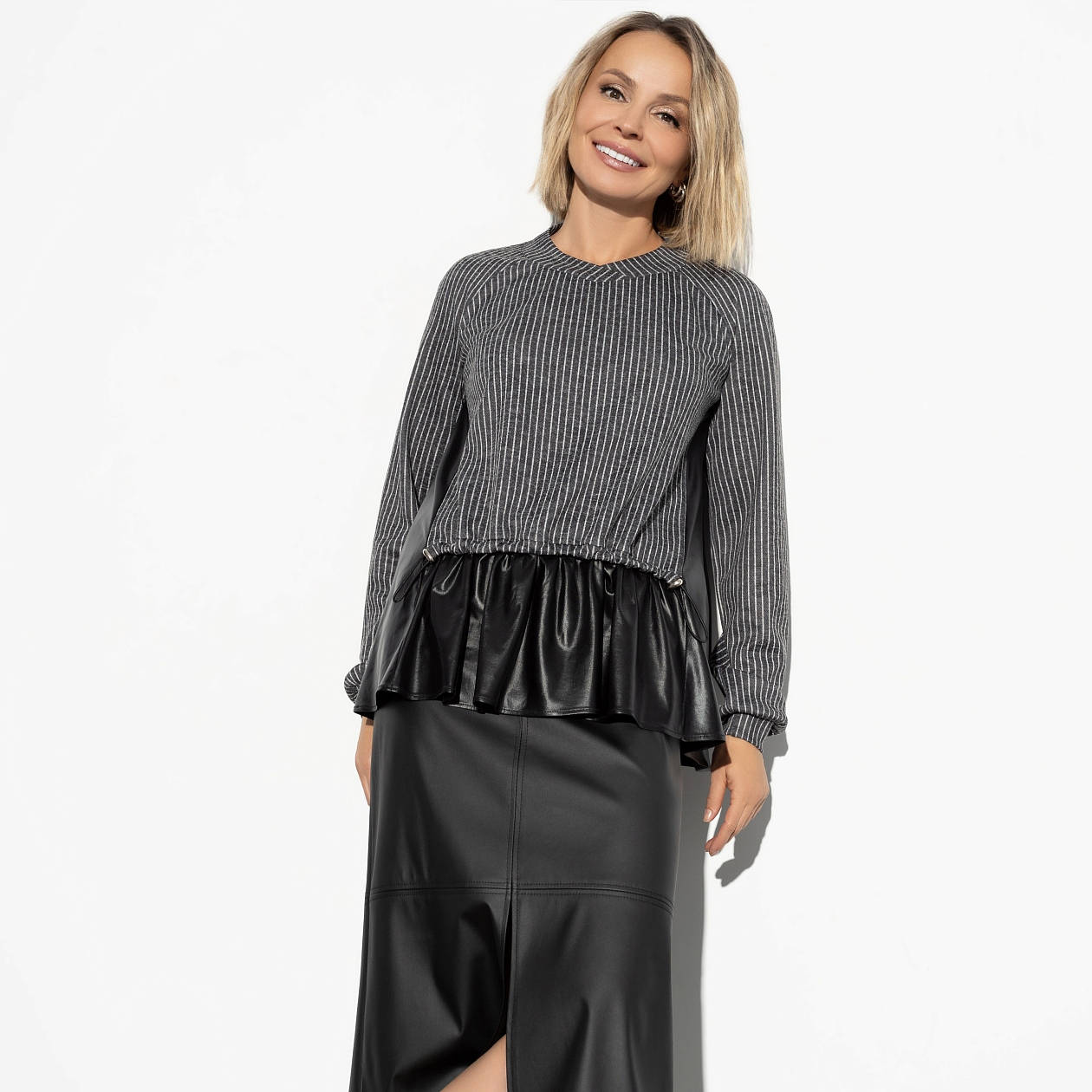 Туника «Модный сиквел (элегант)» — это не просто элемент гардероба, это воплощение настроения и стиля, которые привлекают внимание. Изысканный трикотаж «меланж» и современная «экокожа» делают эту тунику невероятно комфортной, но в то же время элегантной и запоминающейся. Оптом приобретая её, вы получаете не просто вещь, а возможность выразить себя, подчеркнуть свою индивидуальность и настроить свой гардероб на уникальный ритм вашей жизни. Каждая нить на ней говорит о вашем вкусе, а ведь ваш стиль — это отдельная история, которую хочется слушать снова и снова.