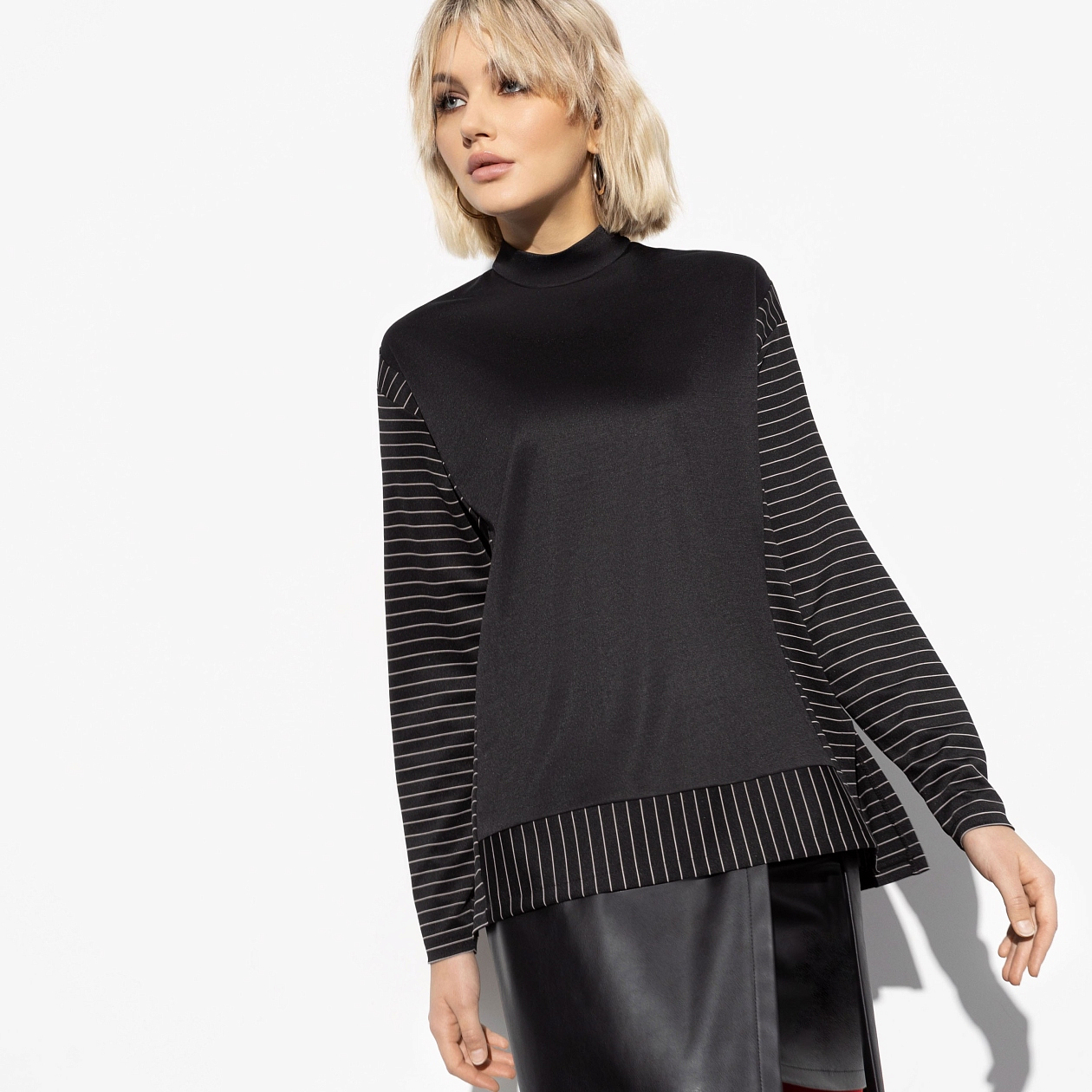Эта туника несет в себе магию преображения: от повседневной элегантности до уверенного шика. Ее универсальный дизайн позволяет создавать десятки образов, сочетающихся с различными аксессуарами и нижней одеждой. Важно знать, что трикотажные материалы не только обеспечивают отличную посадку на любой фигуре, но и практичны в уходе. Предложив такие туники оптом, вы получите постоянную клиентскую базу благодаря их модным решениям и долговечности. Они легки и непринужденны, что создает не только стиль, но и уверенное настроение в любую погоду и любое время года.