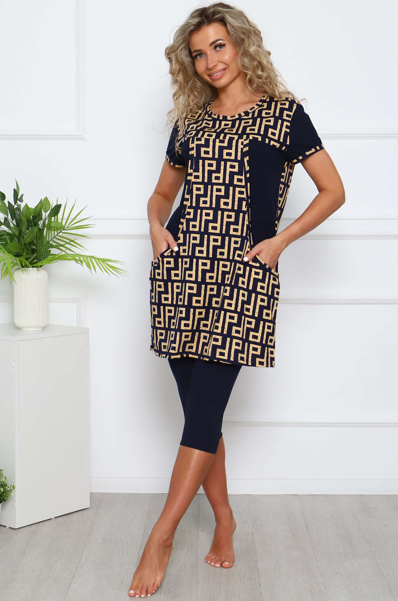 Удобная на каждый день комбинированная удлинённая туника оригинального кроя, с карманами. Выполнена из трикотажного кулирного полотна.