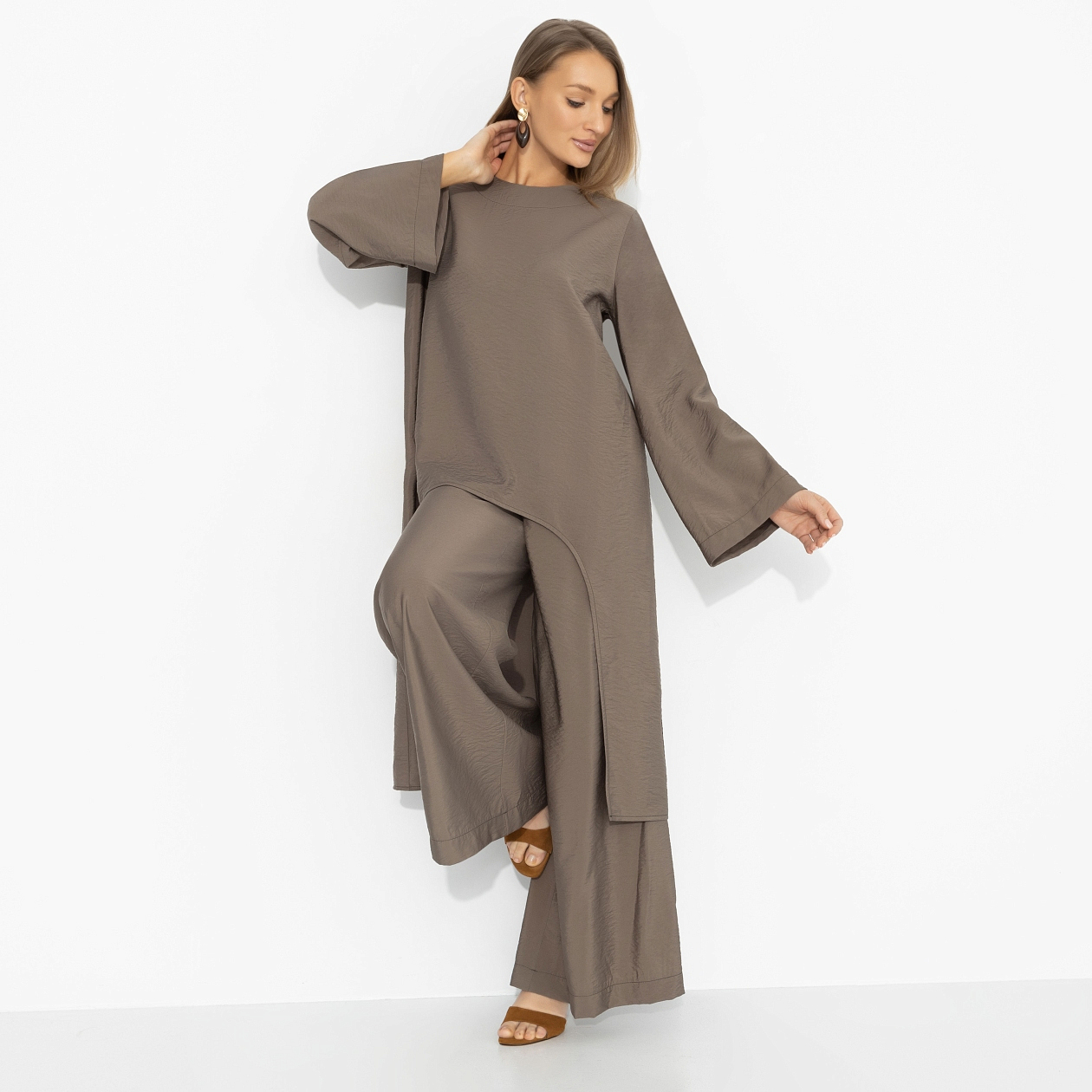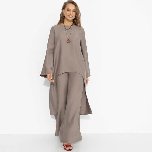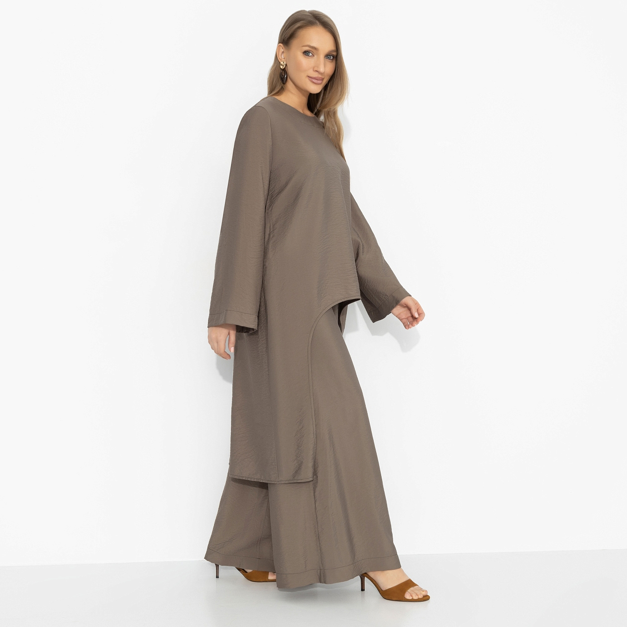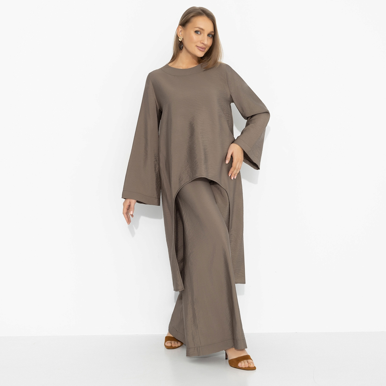 Тренд сезона – осознанная асимметрия. Когда форма будто «случайная», но на самом деле выверена до миллиметра. Эта туника играет именно по таким правилам: спереди – лаконичность, сзади – удлинённая линия, создающая эффект движения даже в статике. Оттенок хаки добавляет характер, вискоза – лёгкость, а вы добавляете главное: уверенность. В таком образе хочется гулять дольше, смеяться громче и иногда делать то, что раньше откладывали «на потом».