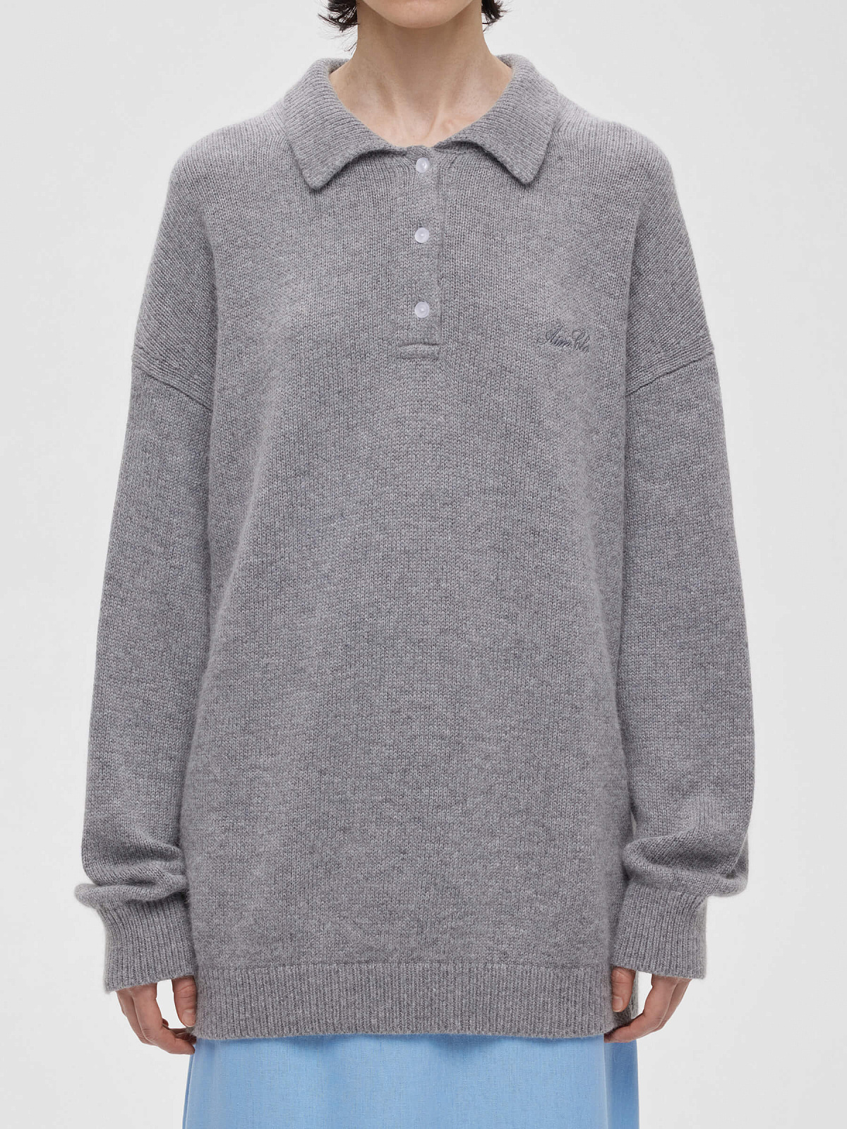 Удлиненный джемпер регби с ангорой, серый