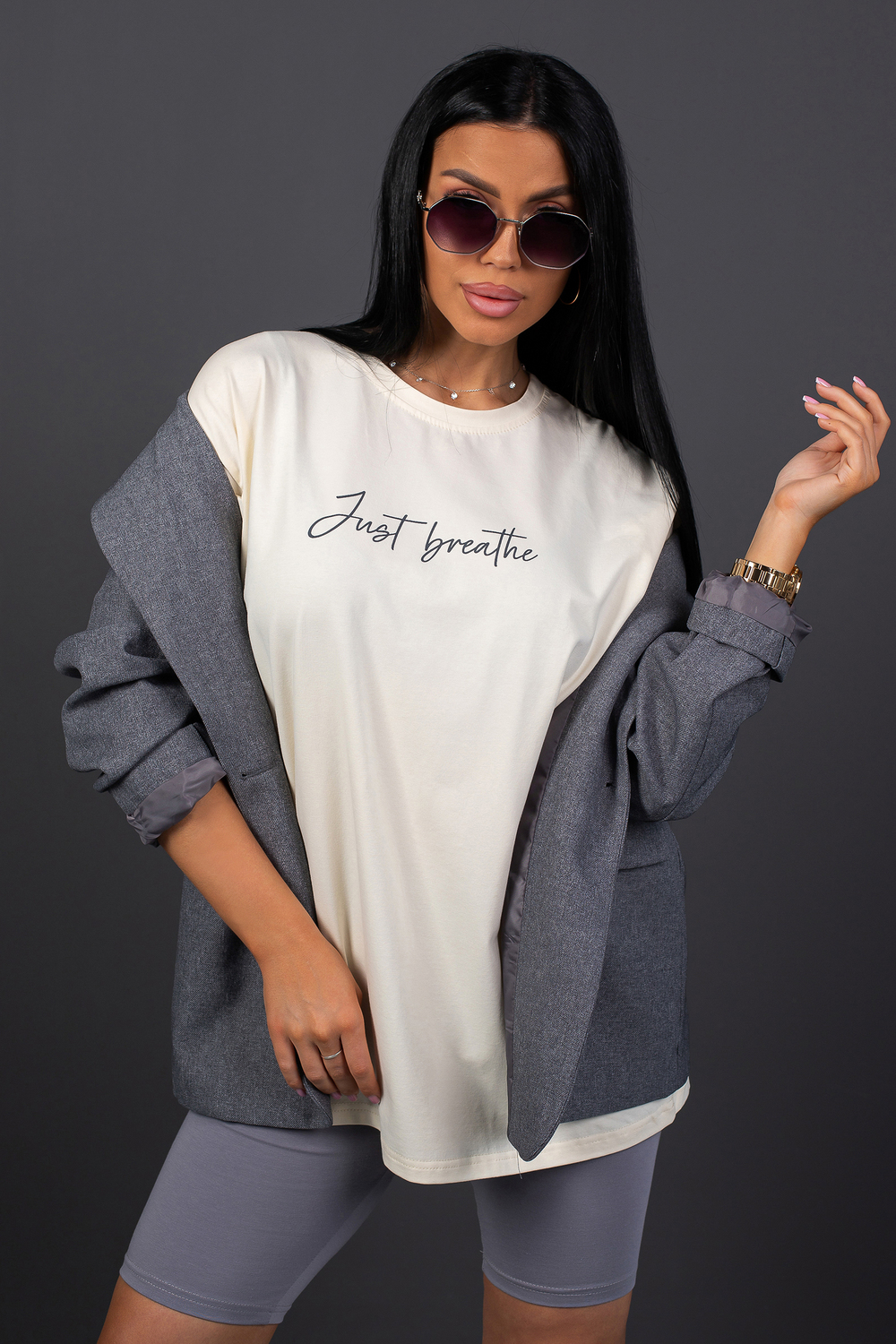 Костюм женский с велосипедками КЖ009 молочно-серый