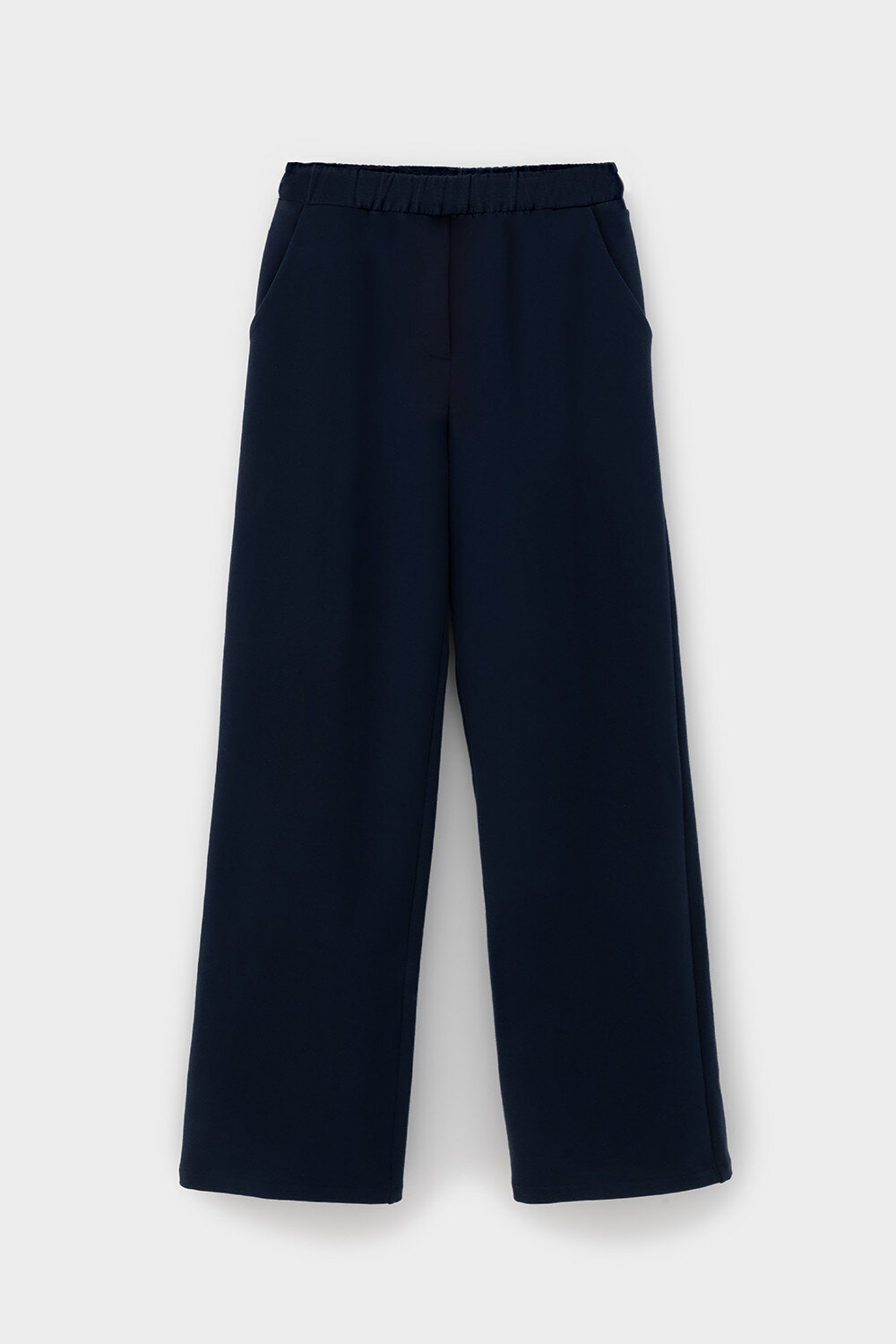 Классические брюки прямого кроя из премиального трикотажа DOUBLE FACE с добавлением спандекса. Широкий пояс из основного полотна с эластичной резинкой внутри, боковые карманы, придают изделию функциональность сохраняя комфорт. Незаменимая классика в летнем гардеробе. Цвет индиго является основой всех морских коллекций