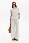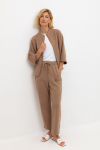 Брюки из премиального трикотажа DOUBLE FACE. За счет фактуры переплетения и специальных обработок сохраняют силуэт и форму. По передней части брюк застрочена стрелка, которая визуально удлиняет ноги. Боковые карманы добавляют функциональности изделию, а эластичная резинка в поясе комфорт при носке. В сочетании с жакетом из этой коллекции вы создадите элегантный образ для летних дней.