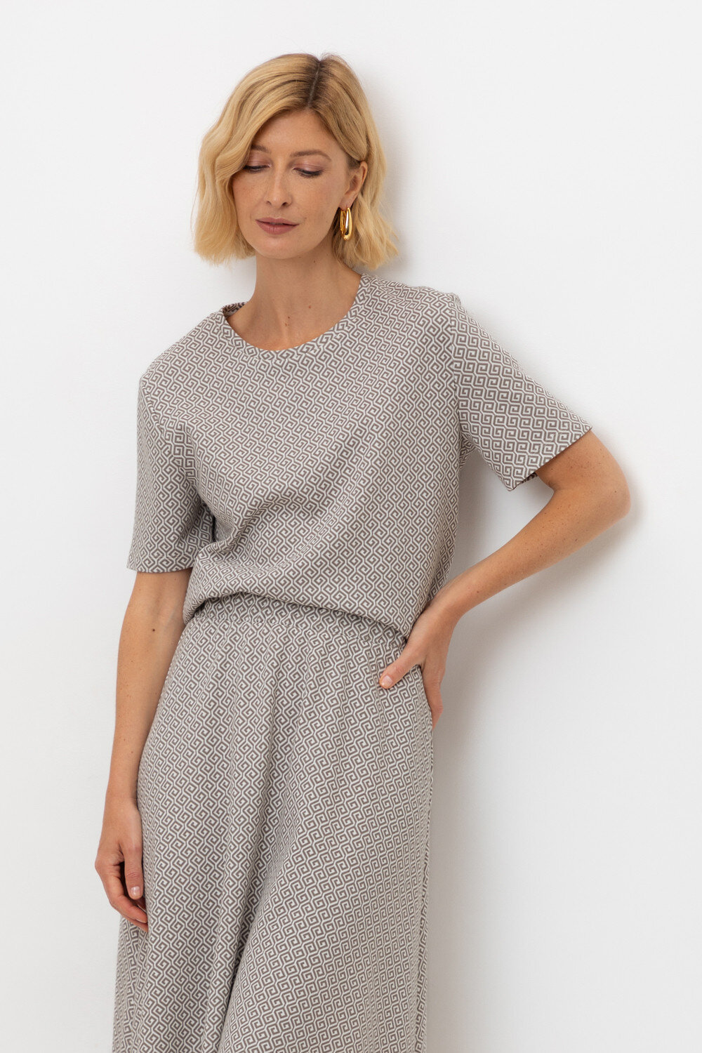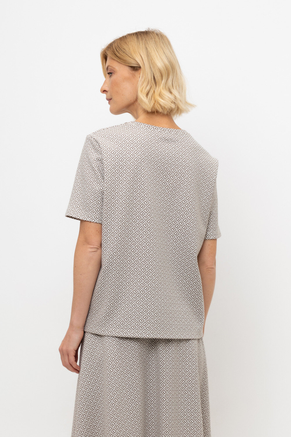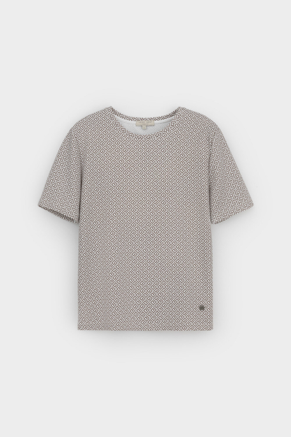Футболка прямого силуэта, изготовленная из премиального трикотажного полотна DOUBLE FACE. Мягкий на ощупь трикотаж выполнен из высококачественной гребенной пряжи, а его графичный дизайн добавляет летнего настроения.