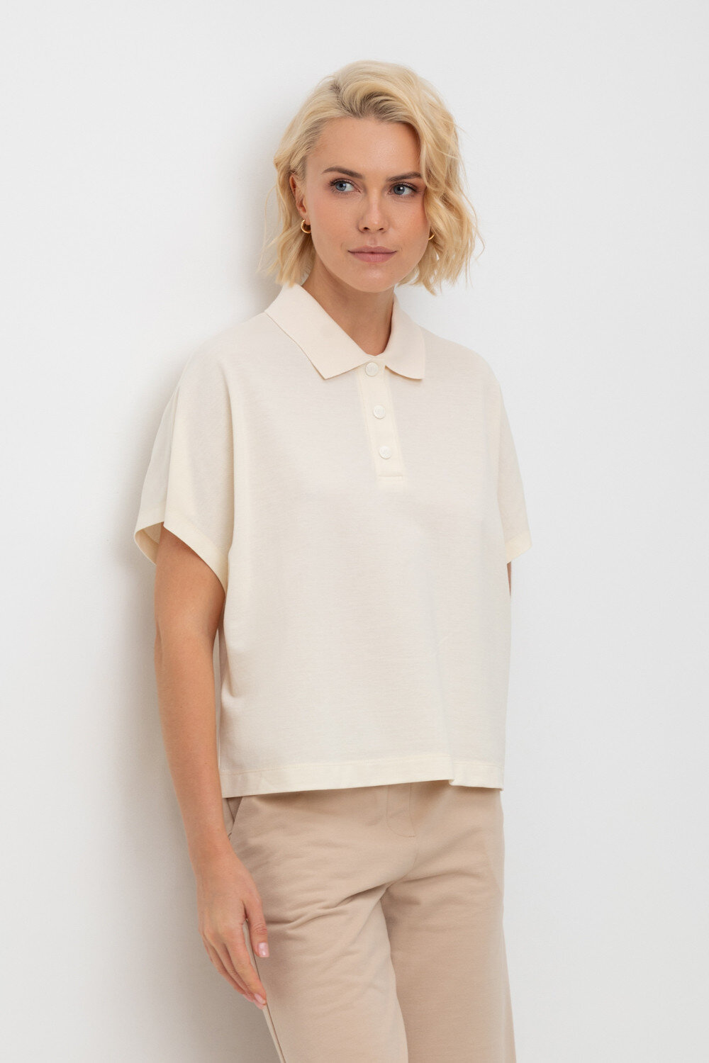 Элегантное трикотажное поло из 100% хлопка в переплетении пике. Свободные спущенные рукава придают изделию умеренный обьем. Классический вязаный воротник и планка с пуговицами являются незаменимым элементом в дизайне поло.