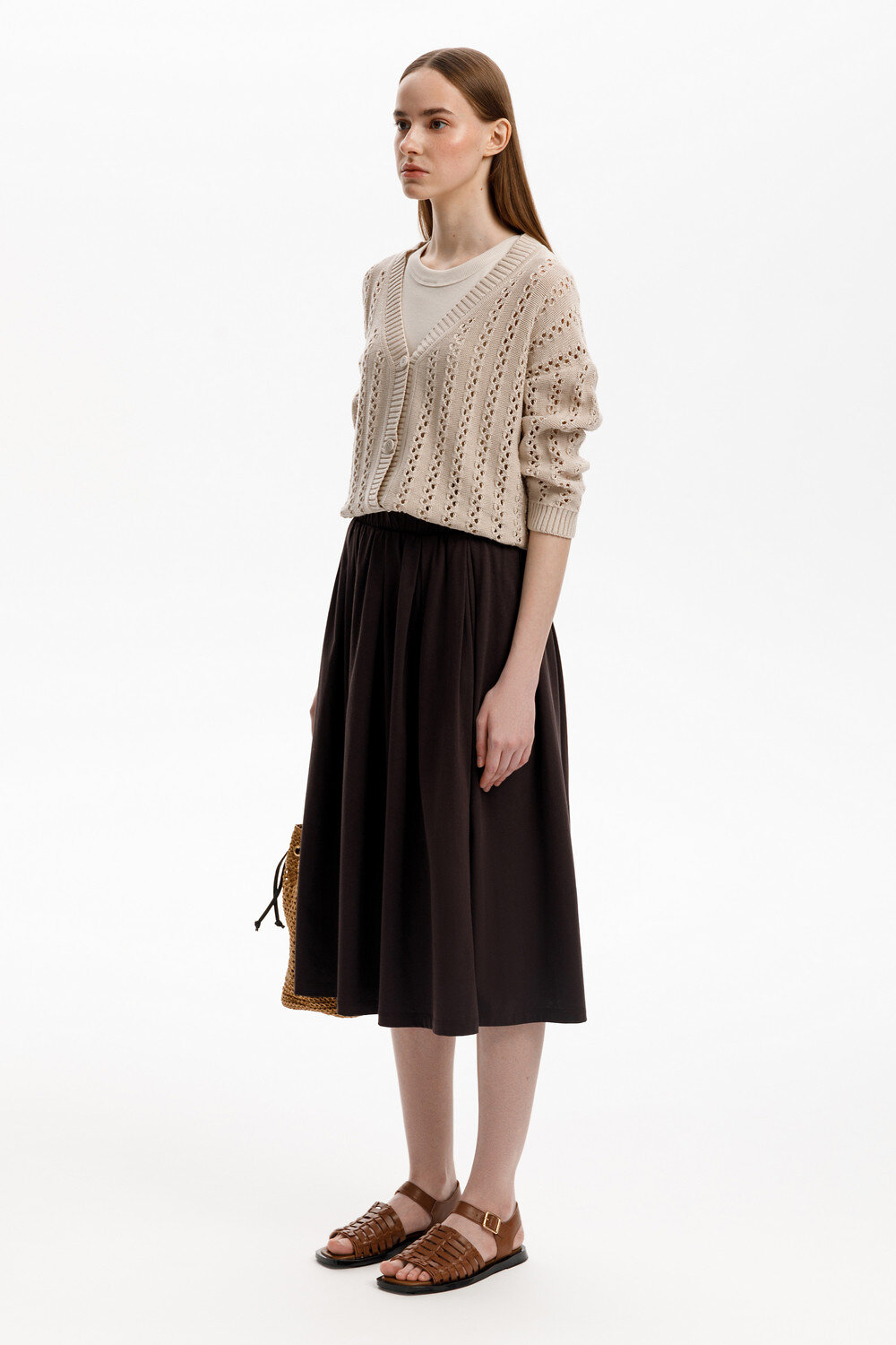Итальянская пряжа на основе хлопка стала основой для мягкого кардигана. Ажурная вязка придает ему текстуру и объем, хлопок в составе, форму и ощущение комфорта во время носки. Незаменим в повседневном летнем гардеробе