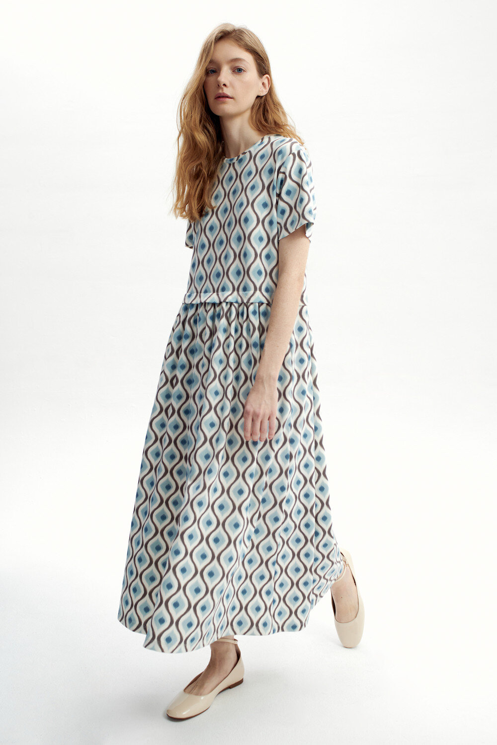 Летнее платье, изготовленное из премиального трикотажного полотна DOUBLE FACE. Мягкий на ощупь трикотаж выполнен из высококачественной гребенной пряжи, а его дизайн на основе восточных мотивов добавляет летнего настроения. Свободный силуэт, наличие боковых карманов, придают изделию спортивный и одновременно романтический стиль.