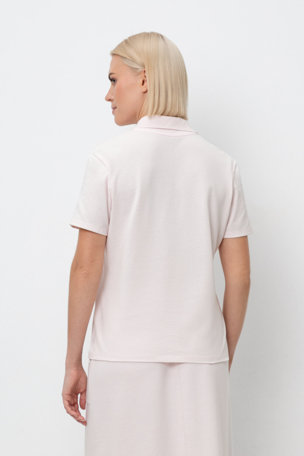 Классическая модель футболки-поло из легкого трикотажа пике в нежно-розовом оттенке. Придает комфорт за счет мягкого хлопка в составе.