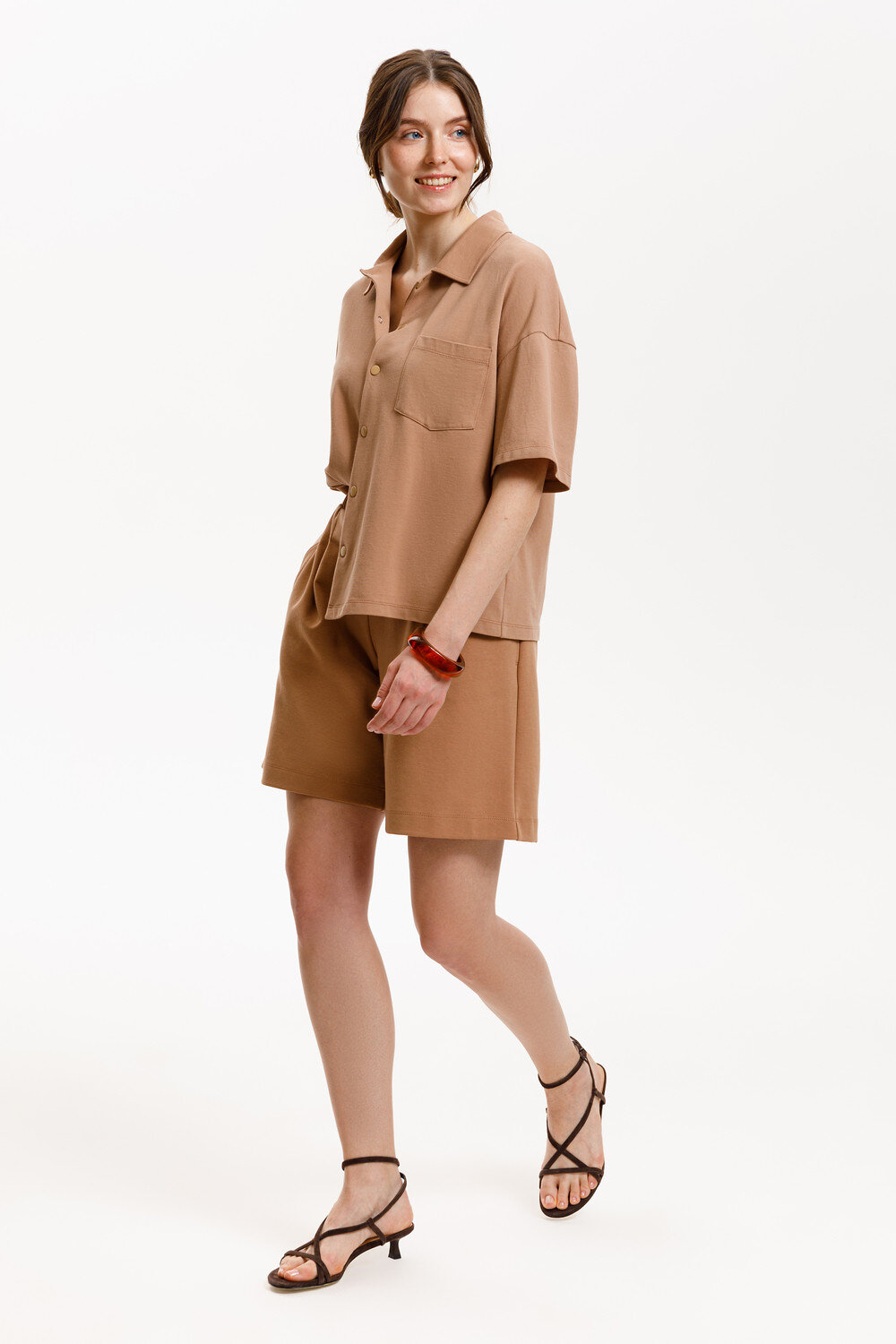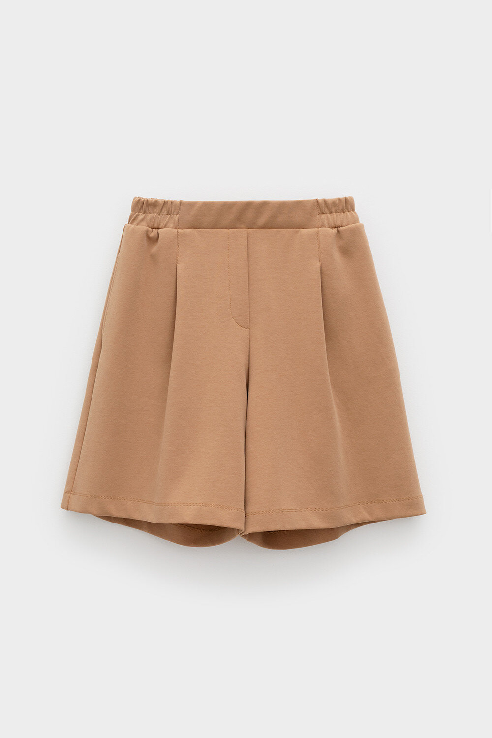 Шорты с защипами и широким трикотажным поясом— это идеальное сочетание элегантности и комфорта. Боковые карманы добавляют функциональности изделию. Изготовлены из премиального трикотажа DOUBLE FACE с добавлением спандекса.