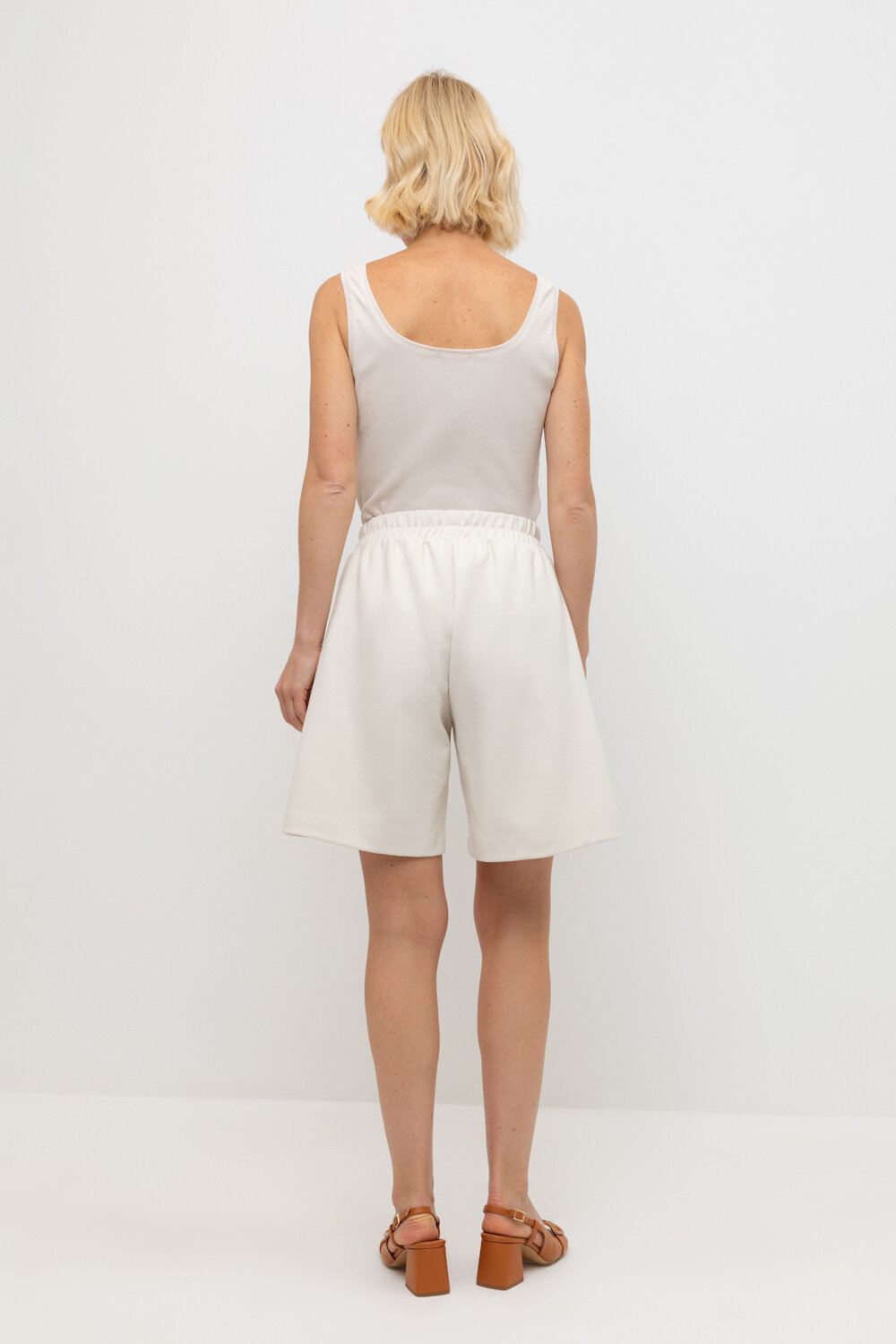 Шорты с защипами и широким трикотажным поясом— это идеальное сочетание элегантности и комфорта. Боковые карманы добавляют функциональности изделию. Изготовлены из премиального трикотажа DOUBLE FACE с добавлением спандекса.