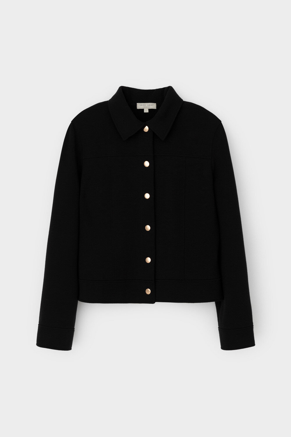 Укорочённый жакет, изготовленный из премиального трикотажного полотна DOUBLE FACE с добавлением спандекса. За счет фактуры переплетения и специальных обработок сохраняет силуэт и форму, что позволяет сочетать его как с юбкой, так и с брюками. Хлопок в составе добавит комфорта при носке.