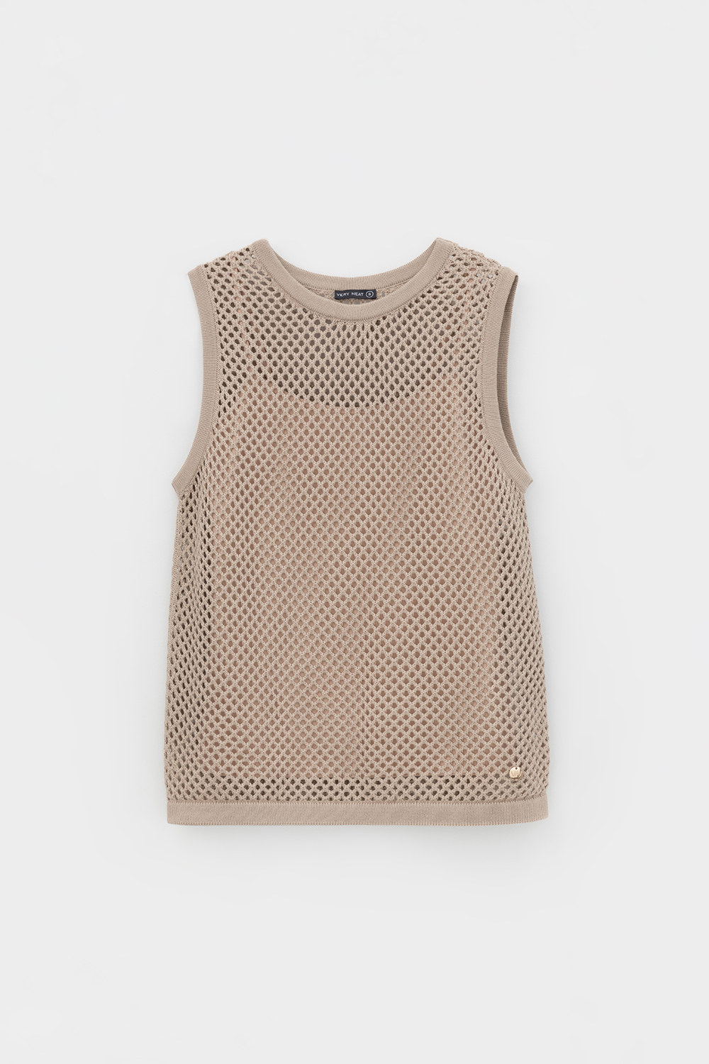 Вязаная ажурная майка. Состав 50% хлопок, 50% акрил. Благодаря акрилу в составе изделие не пилингуется. В комплекте внутренняя майка из супрема с лайкрой.