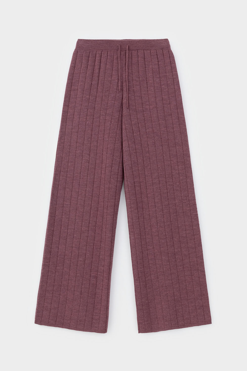 Пояс регулируется вязаным шнуром в тон брюк. Плотная фактура вязания согревает и сохраняет форму во время носки.