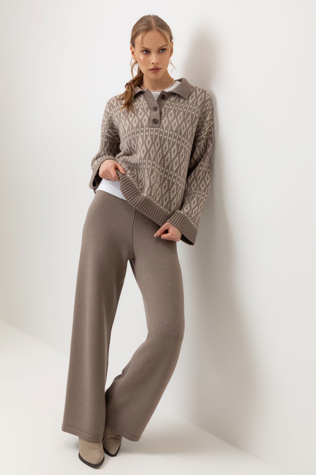 Мягкие брюки из премиальной пряжи, созданные с использованием инновационной технологии смешанного волокна. Уникальная технология производства позволила сформировать воздушную жаккардовую структуру, которая выглядит невероятно изысканно. Деликатное переплетение натуральной шерсти с современным акриловым волокном дарит непревзойденные тактильные ощущения.