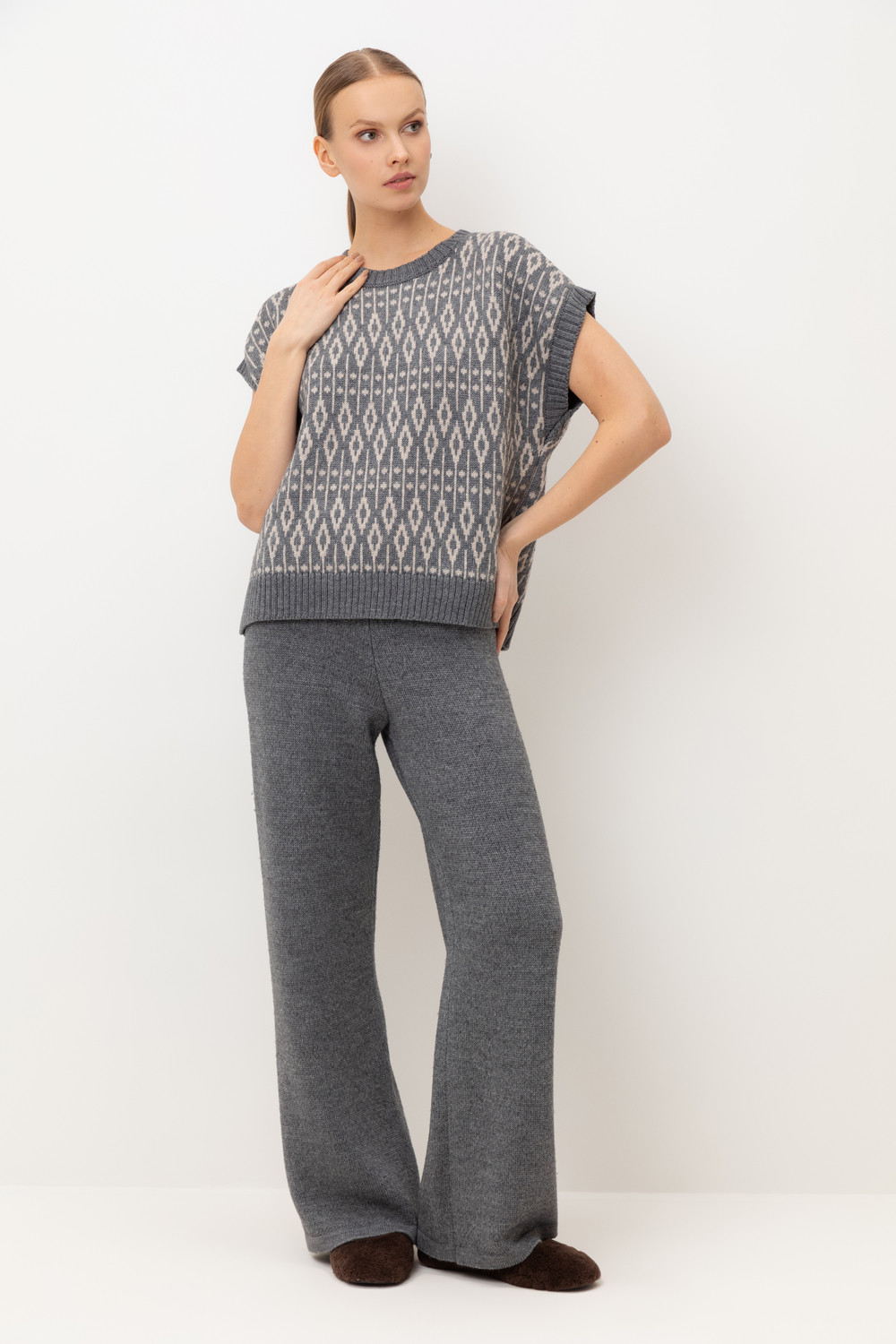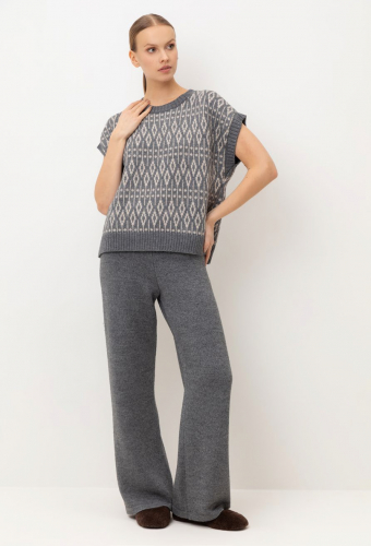 Мягкие брюки из премиальной пряжи, созданные с использованием инновационной технологии смешанного волокна. Уникальная технология производства позволила сформировать воздушную жаккардовую структуру, которая выглядит невероятно изысканно. Деликатное переплетение натуральной шерсти с современным акриловым волокном дарит непревзойденные тактильные ощущения.