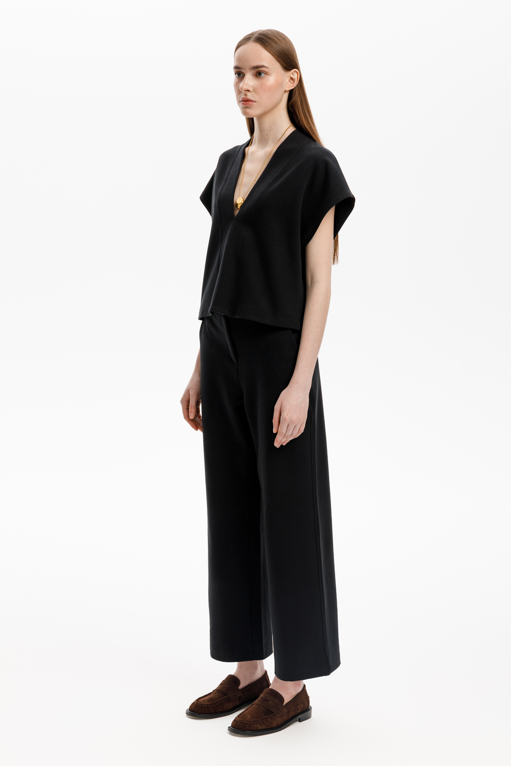 Брюки прямого кроя из премиального трикотажного полотна DOUBLE FACE с добавлением спандекса. Прямой крой подчеркивает силуэт, создавая классический образ. Боковые карманы и застежка спереди придают изделию функциональность.
