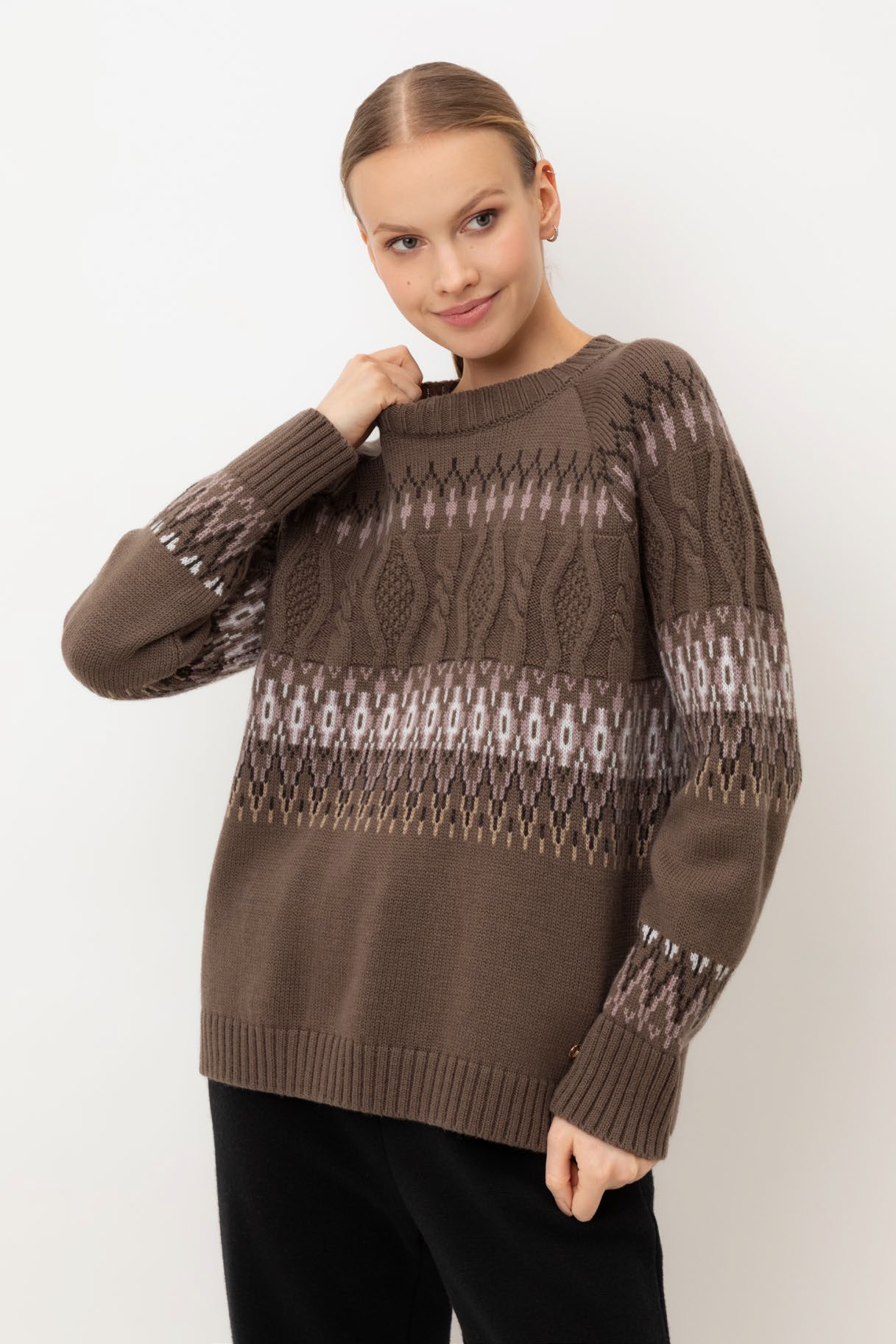 Мягкий джемпер в скандинаском стиле из премиальной пряжи, созданный с использованием инновационной технологии смешанного волокна. Деликатное сочетание шерсти и акрила обеспечивает непревзойденный комфорт: изделие нежно облегает фигуру, гарантирует мягкость прикосновения и сохраняет безупречную форму.