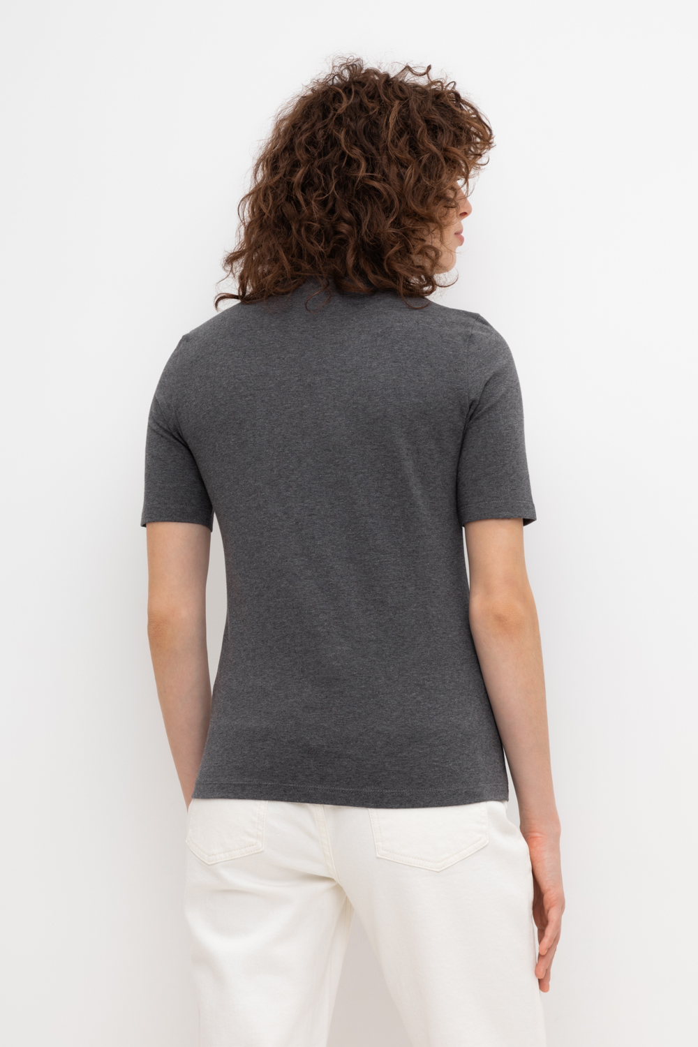 Базовый джемпер с короткими рукавами и воротником-стойкой из плотного однотонного трикотажа супрем с добавлением спандекса.