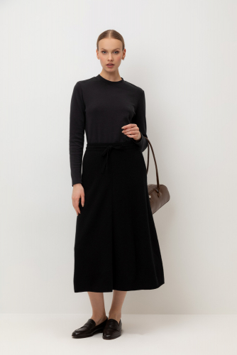 Модель имеет классический круглый вырез, что делает ее универсальной. Удобный прямой крой и рельефный шов, расположенный по центру, добавляют изделию оригинальности.