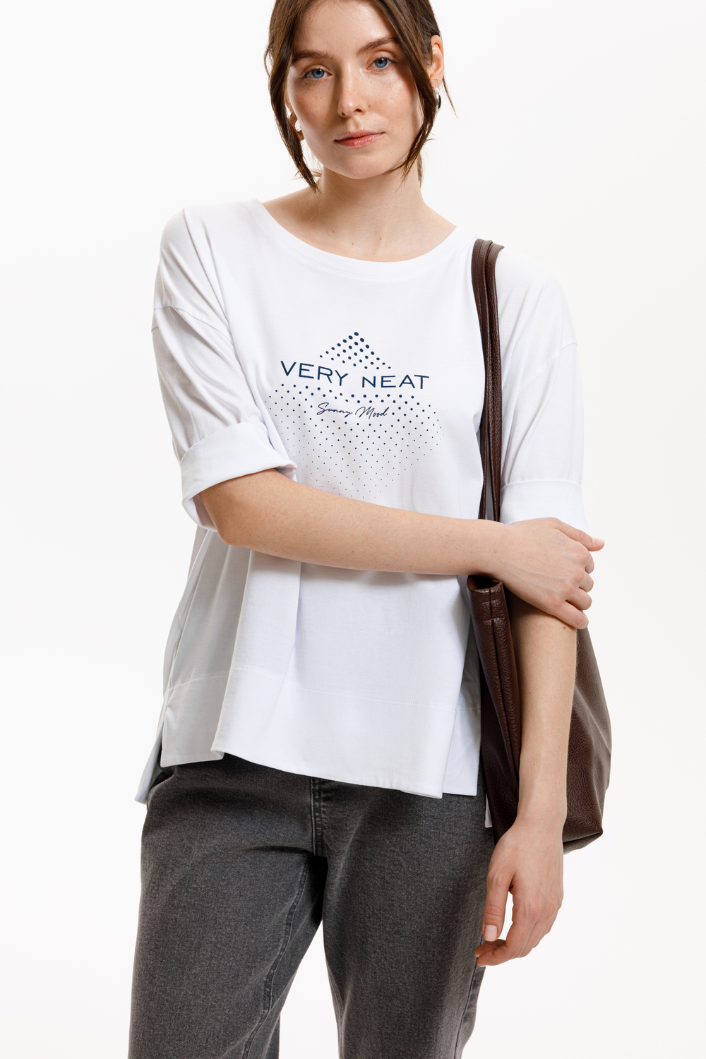 Футболка со спущенным рукавом из гребенного хлопка. Обеспечивая комфорт и свободу движений незаменима в жаркие летние дни.