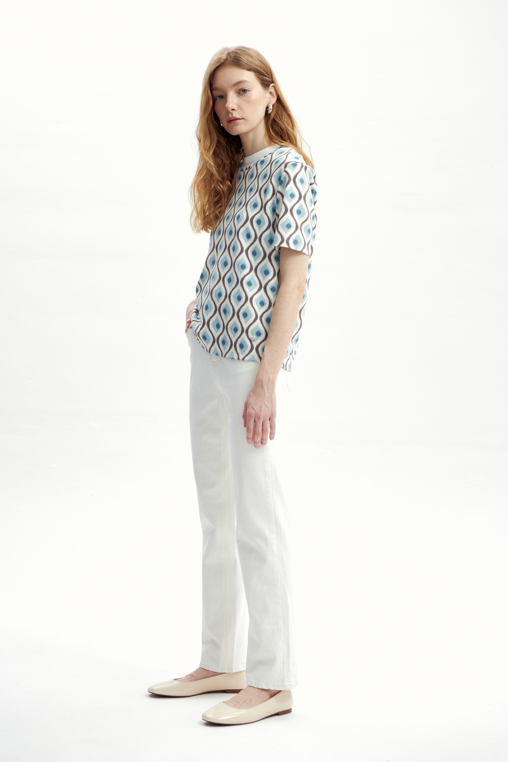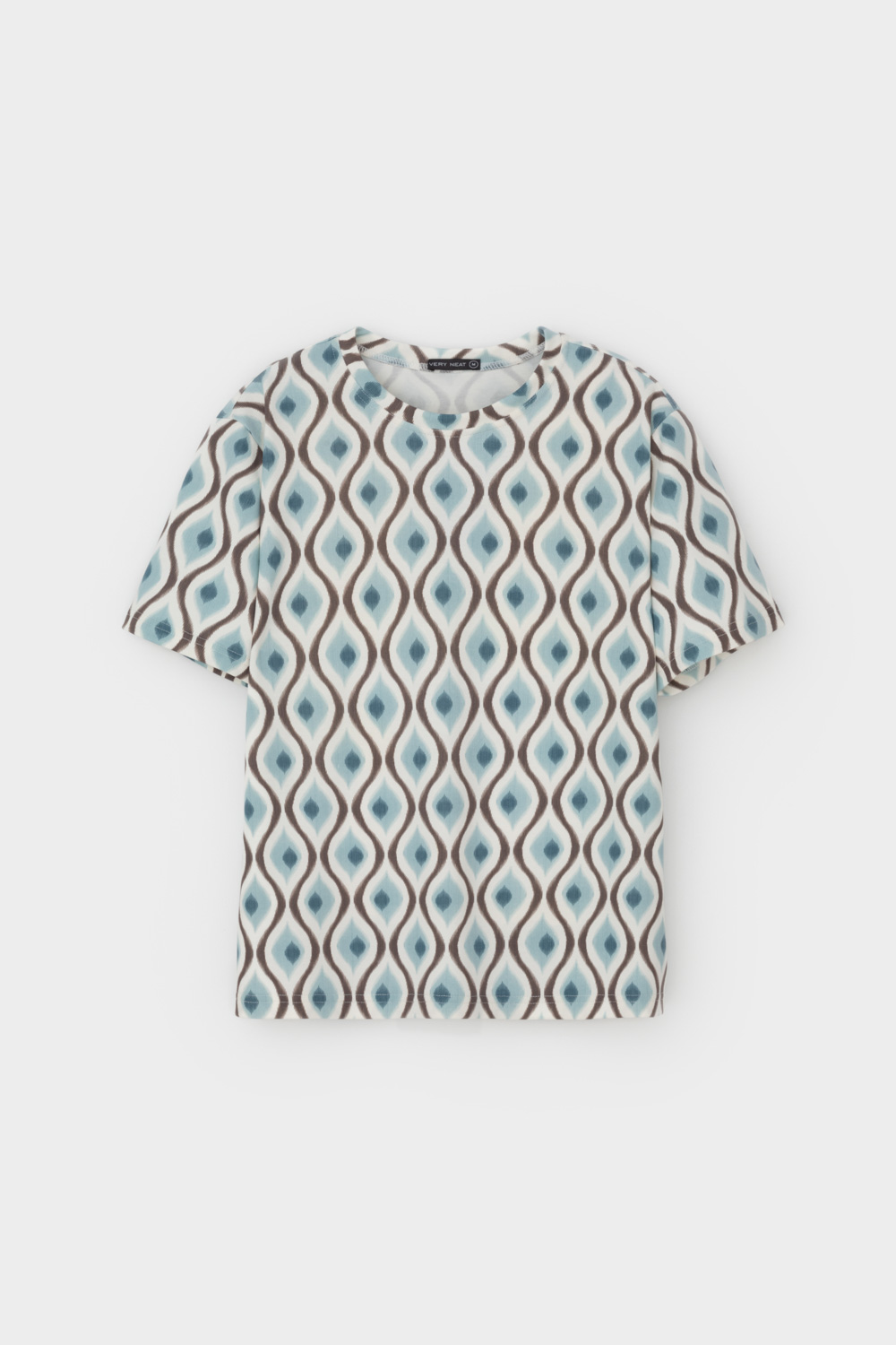 Футболка прямого силуэта, изготовленная из премиального трикотажного полотна DOUBLE FACE. Мягкий на ощупь трикотаж выполнен из высококачественной гребенной пряжи, а его дизайн на основе восточных мотивов добавляет летнего настроения.