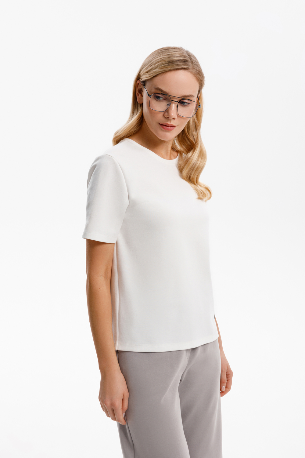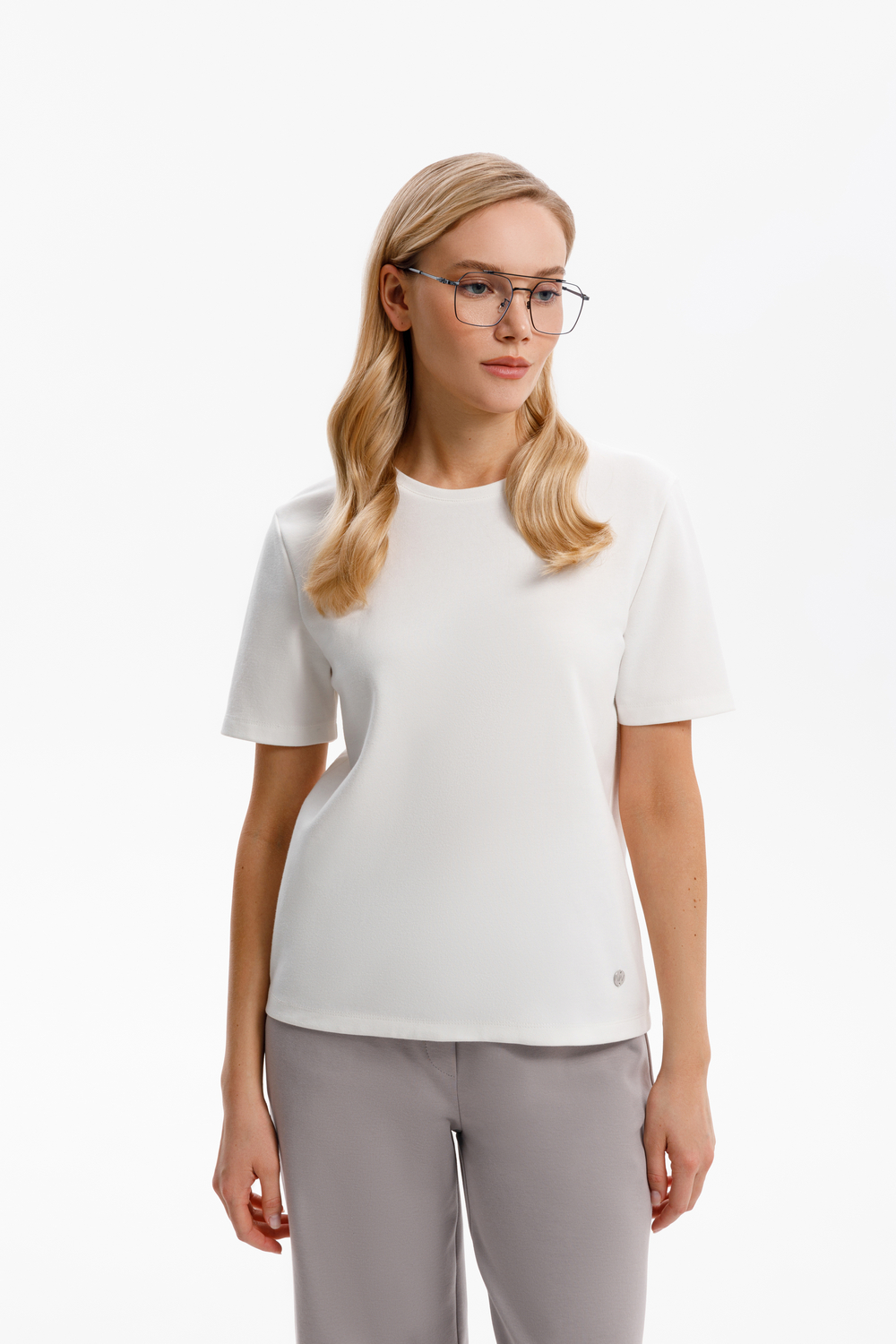 Футболка прямого силуэта, изготовленная из премиального трикотажного полотна DOUBLE FACE. Мягкий на ощупь трикотаж выполнен из высококачественной гребенной пряжи, а ее молочный оттенок добавляет летнего настроения.