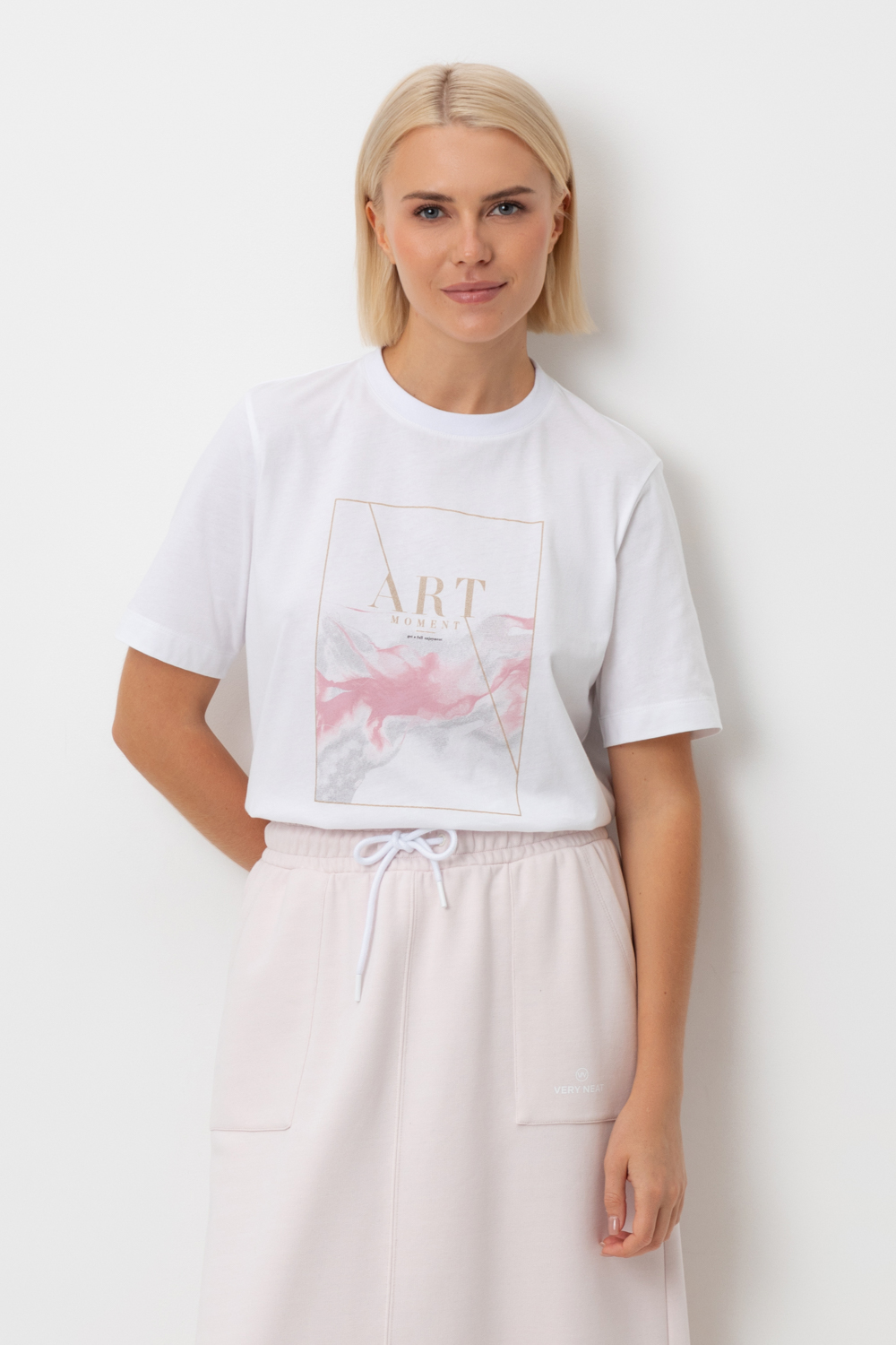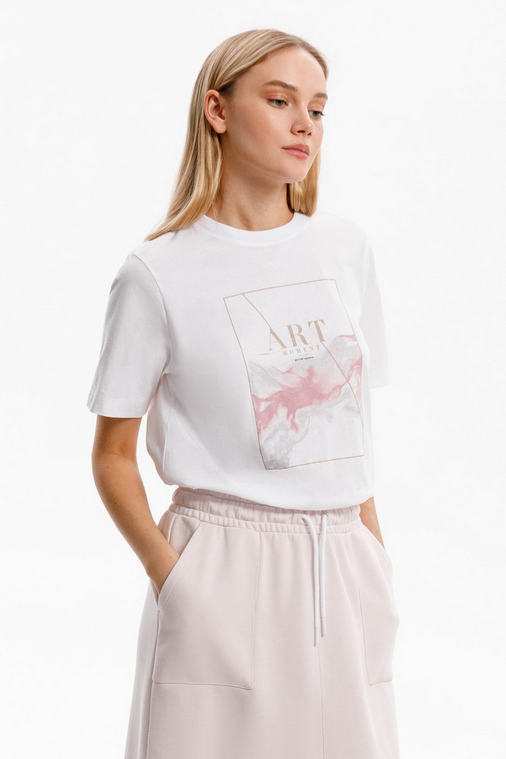 Футболка прямого силуэта из высококачественного гребенного хлопка. Мягкий на ощупь принт выполнен из водных красок, что обеспечивает устойчивость к многократным стиркам, а его дизайн добавляет летнего настроения.